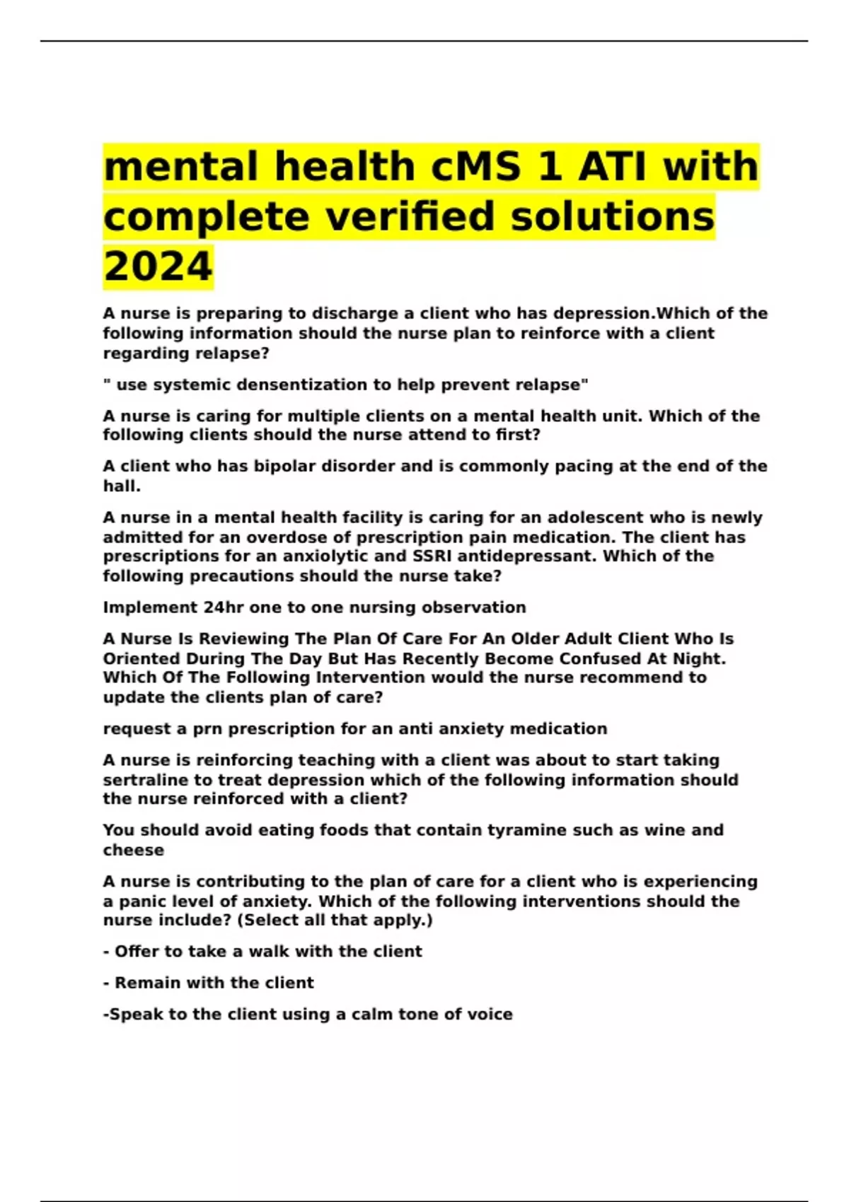 mental health cMS 1 ATI with complete verified solutions 2024