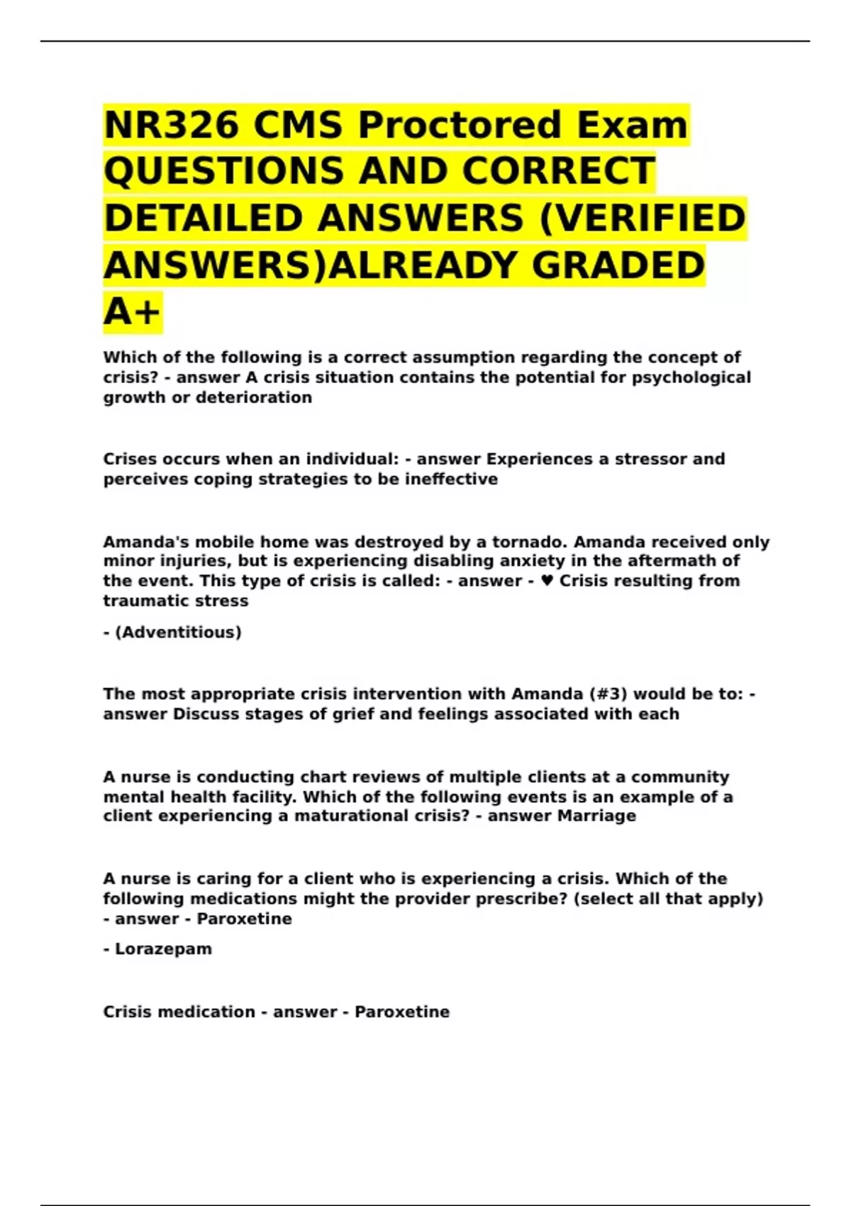 NR326 CMS Proctored Exam