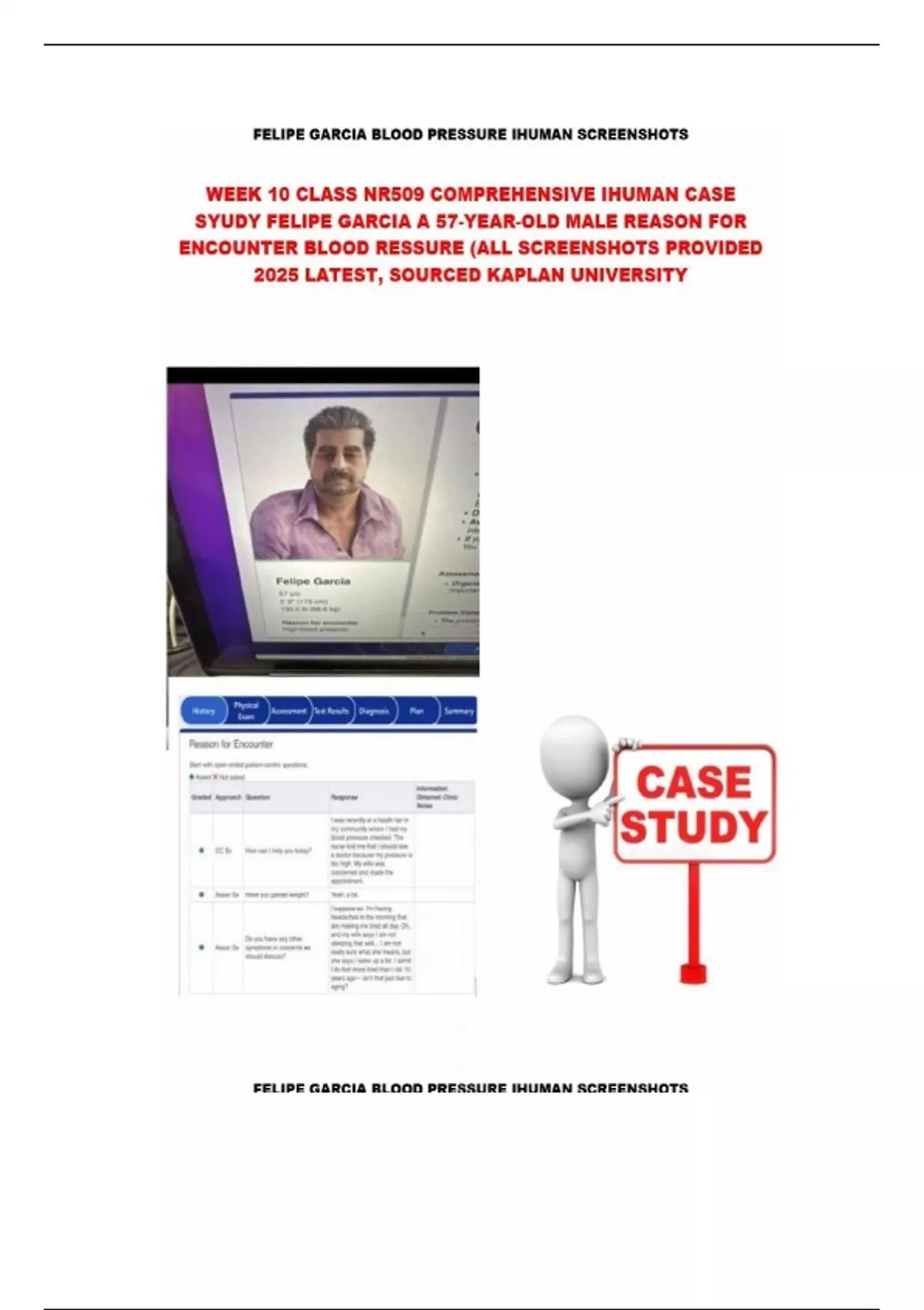 "I Human Felipe Garcia NR 509 week 5 Case Study High Blood Pressure" comprehensive case study on felipe gracia reason for encounter high blood pressure