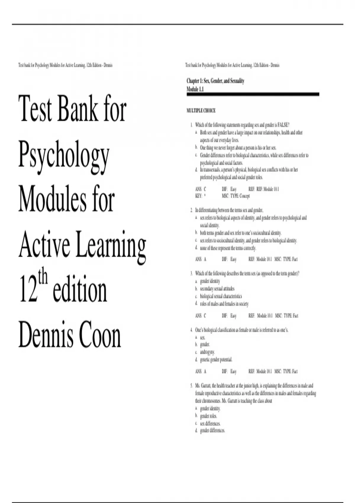 Test Bank for Psychology Modules for Active Learning 12th edition Dennis Coon Test Bank for Psychology Modules for Active Learning 12th edition Dennis Coon Test Bank for Psychology Modules for Active Learning 12th edition Dennis Coon