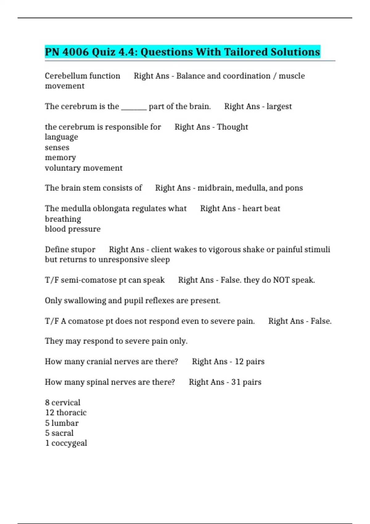 How many spinal nerves are there? Right Ans - 31 pairs