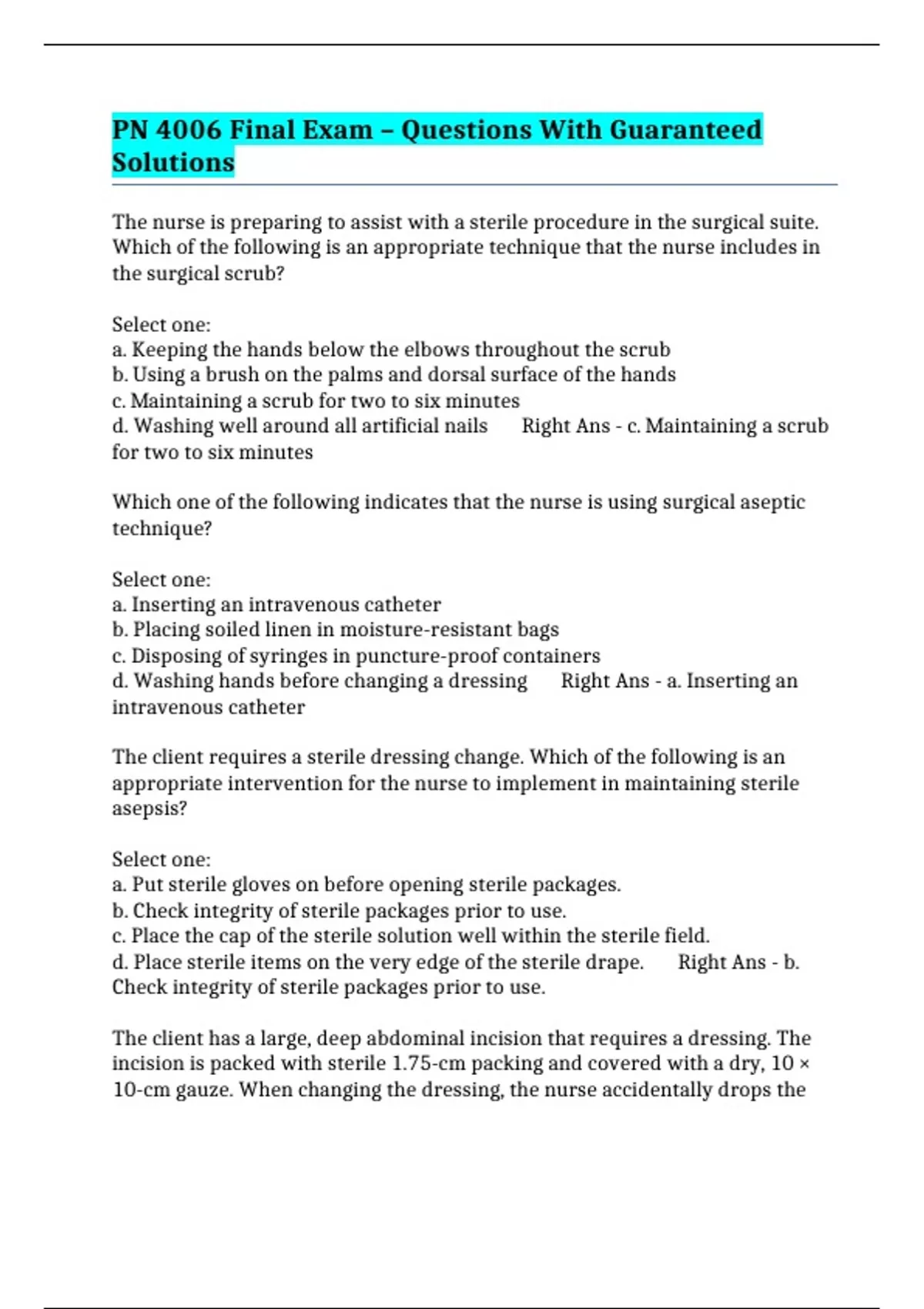 PN 4006 Final Exam – Questions With Guaranteed