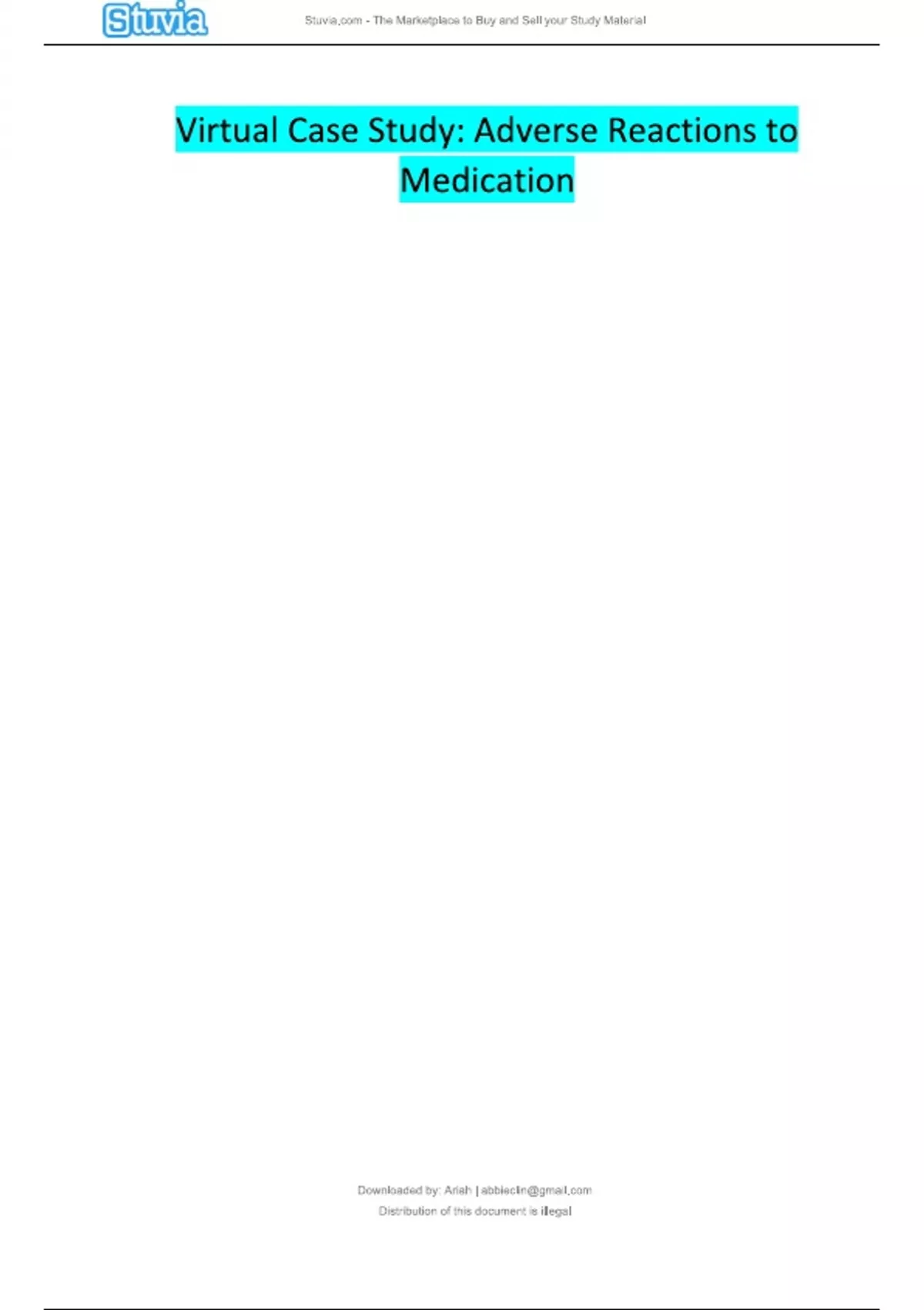Virtual Case Study Adverse Reactions to Medication.