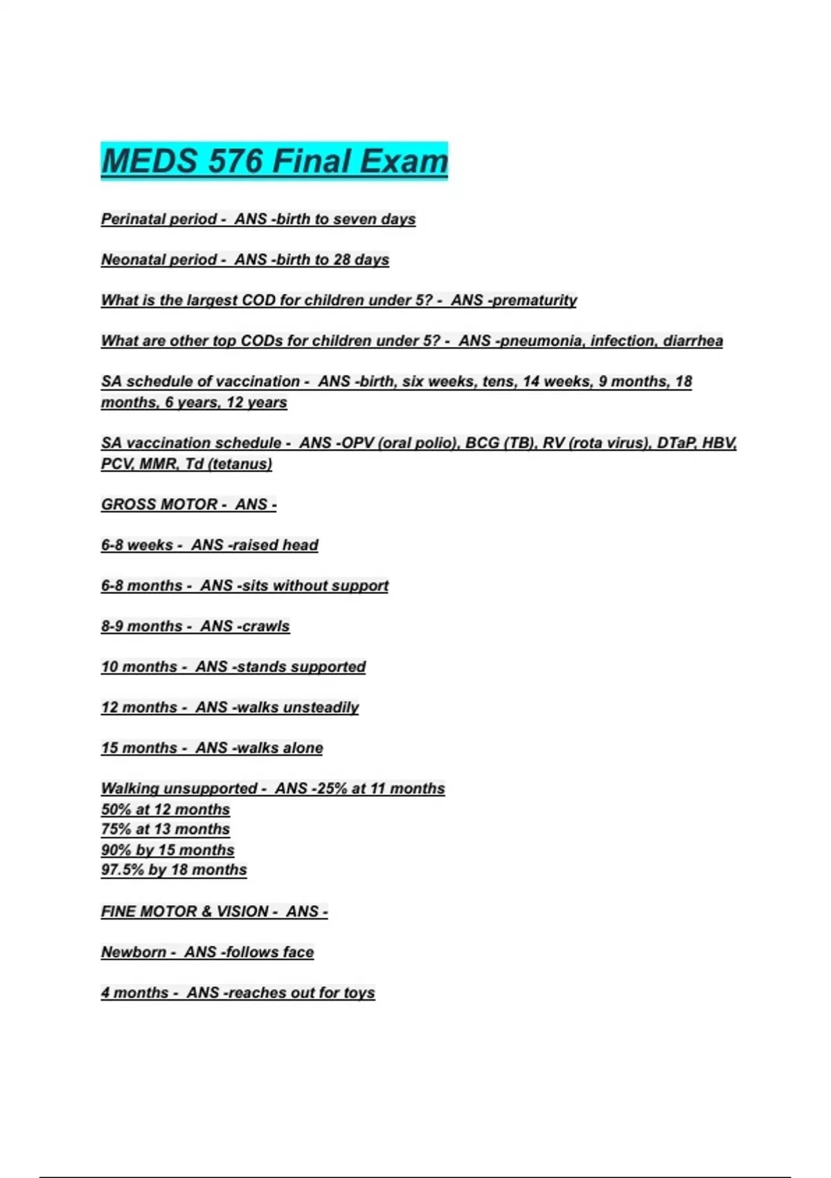 MEDS 576 Final Exam Questions with correct Answers 2025/2026( A+ GRADED 100% VERIFIED).