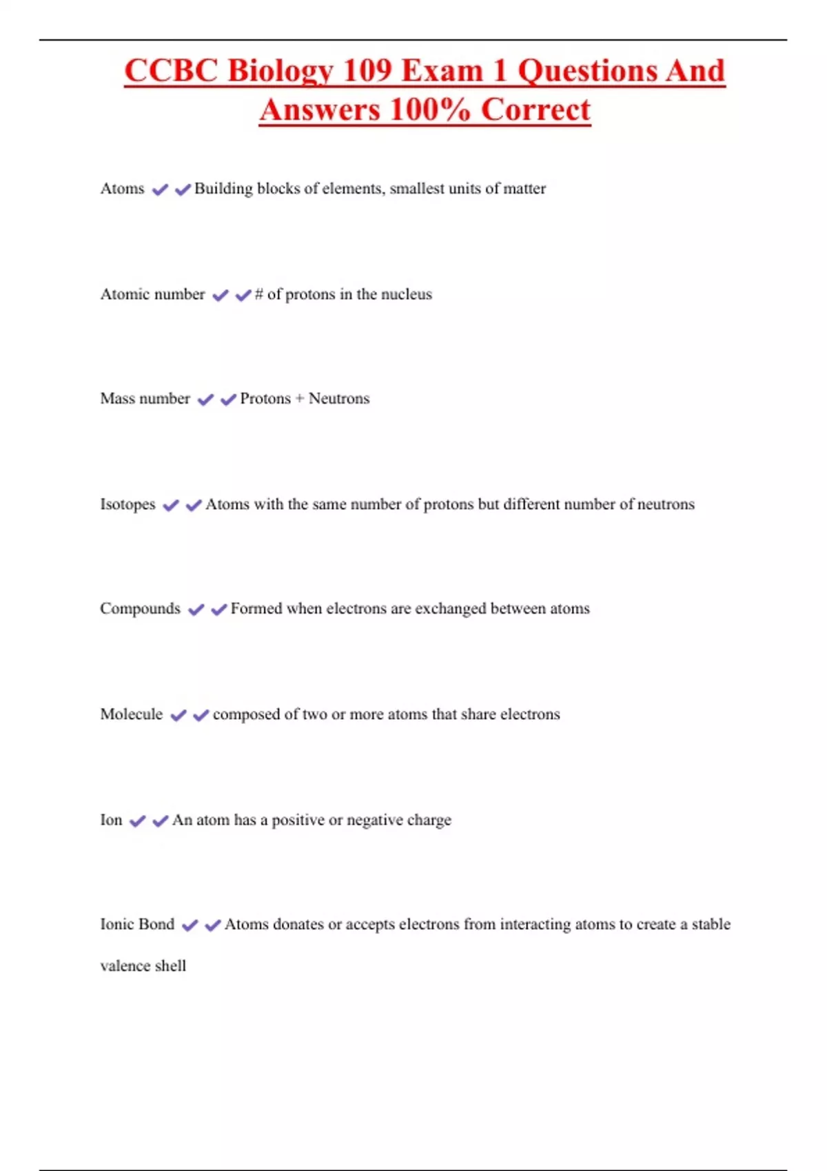 , CCBC Biology 109 Exam 1 Questions And