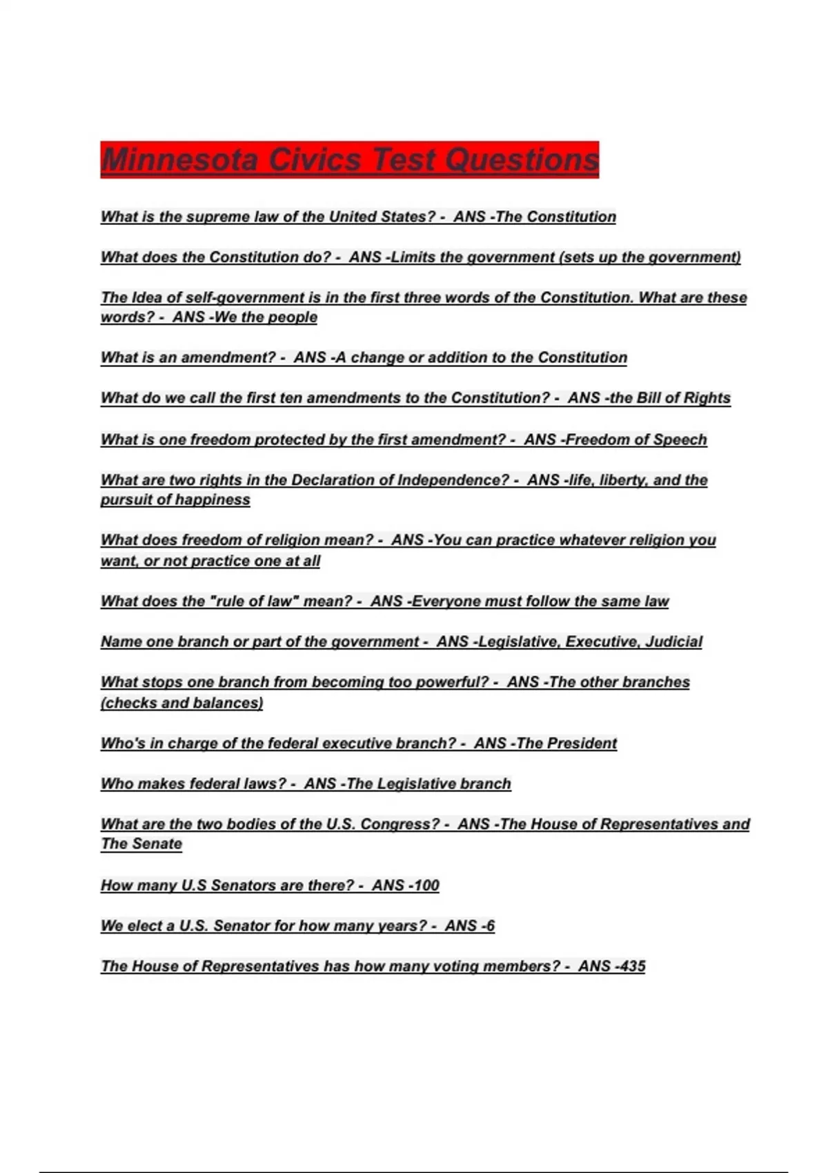 Minnesota Civics Test Questions with complete solutions latest 2025/2026( A+ GRADED 100% VERIFIED).