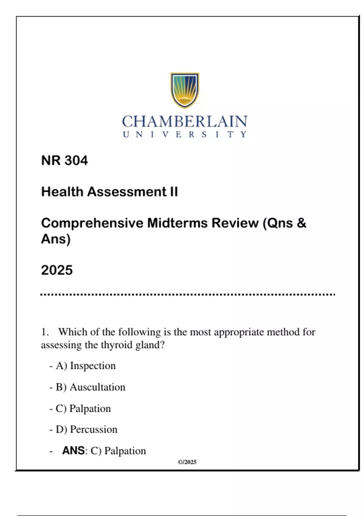 NR 304 (HEALTH ASSESSMENT II) COMPREHENSIVE MIDTERMS REVIEW 2025 ANSWERED.NR 304 (HEALTH ASSESSMENT II) COMPREHENSIVE MIDTERMS REVIEW 2025 ANSWERED.NR 304 (HEALTH ASSESSMENT II) COMPREHENSIVE MIDTERMS REVIEW 2025 ANSWERED.