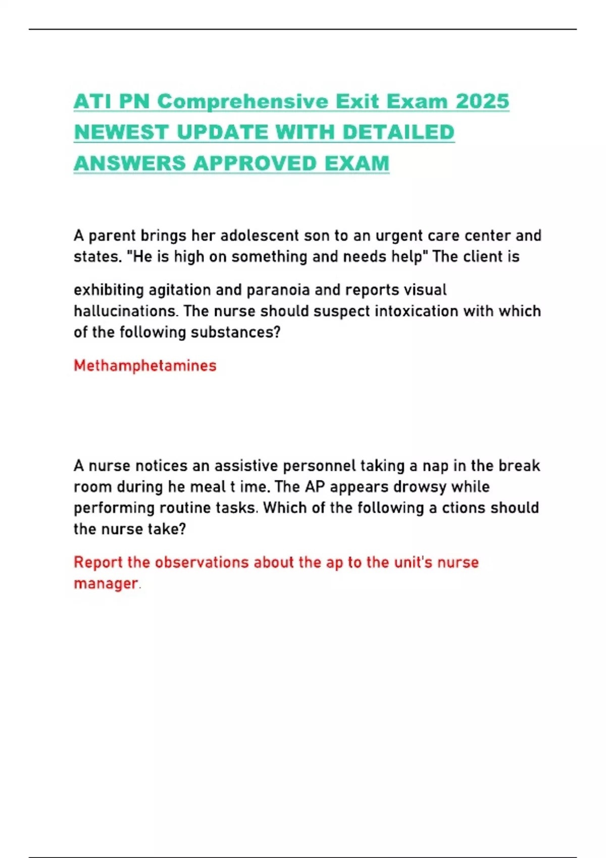 ATI PN Comprehensive Exit Exam 2025 NEWEST UPDATE WITH DETAILED ANSWERS APPROVED EXAM