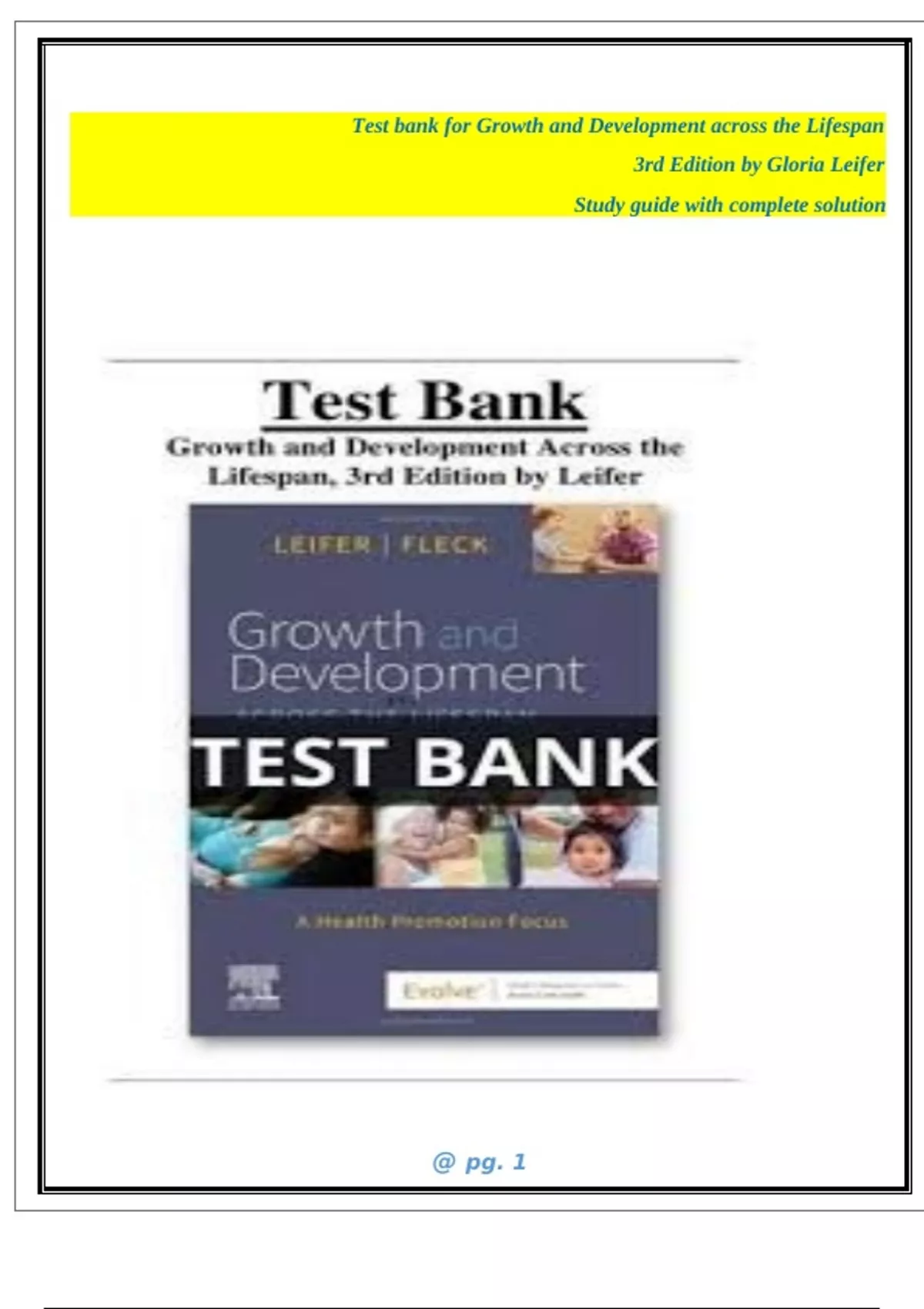 Test bank for Growth and Development across the Lifespan 3rd Edition by Gloria Leifer Study guide with complete solution