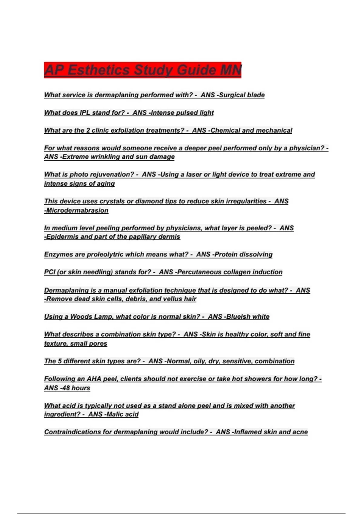 AP Esthetics Study Guide MN Questions and Answers 2025/2026( A+ GRADED 100% VERIFIED).