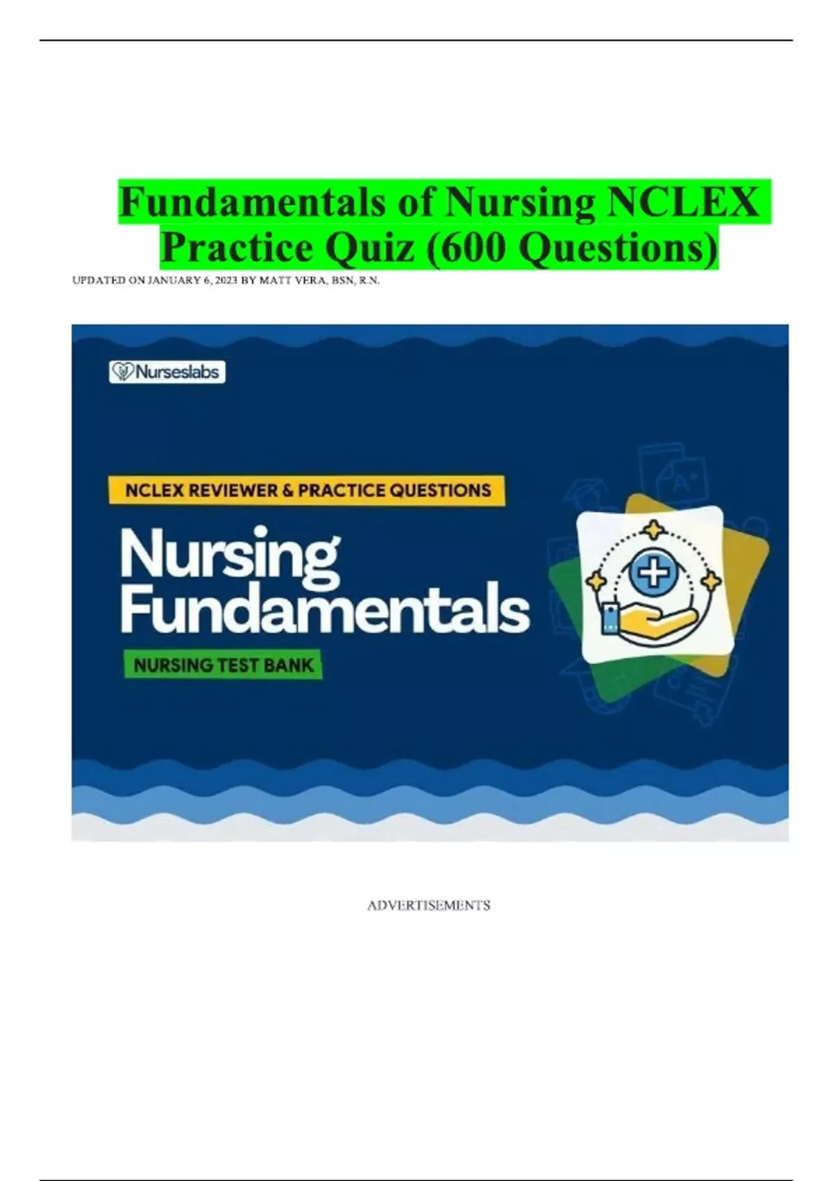Fundamentals of Nursing NCLEX Practice Quiz (600 Questions)