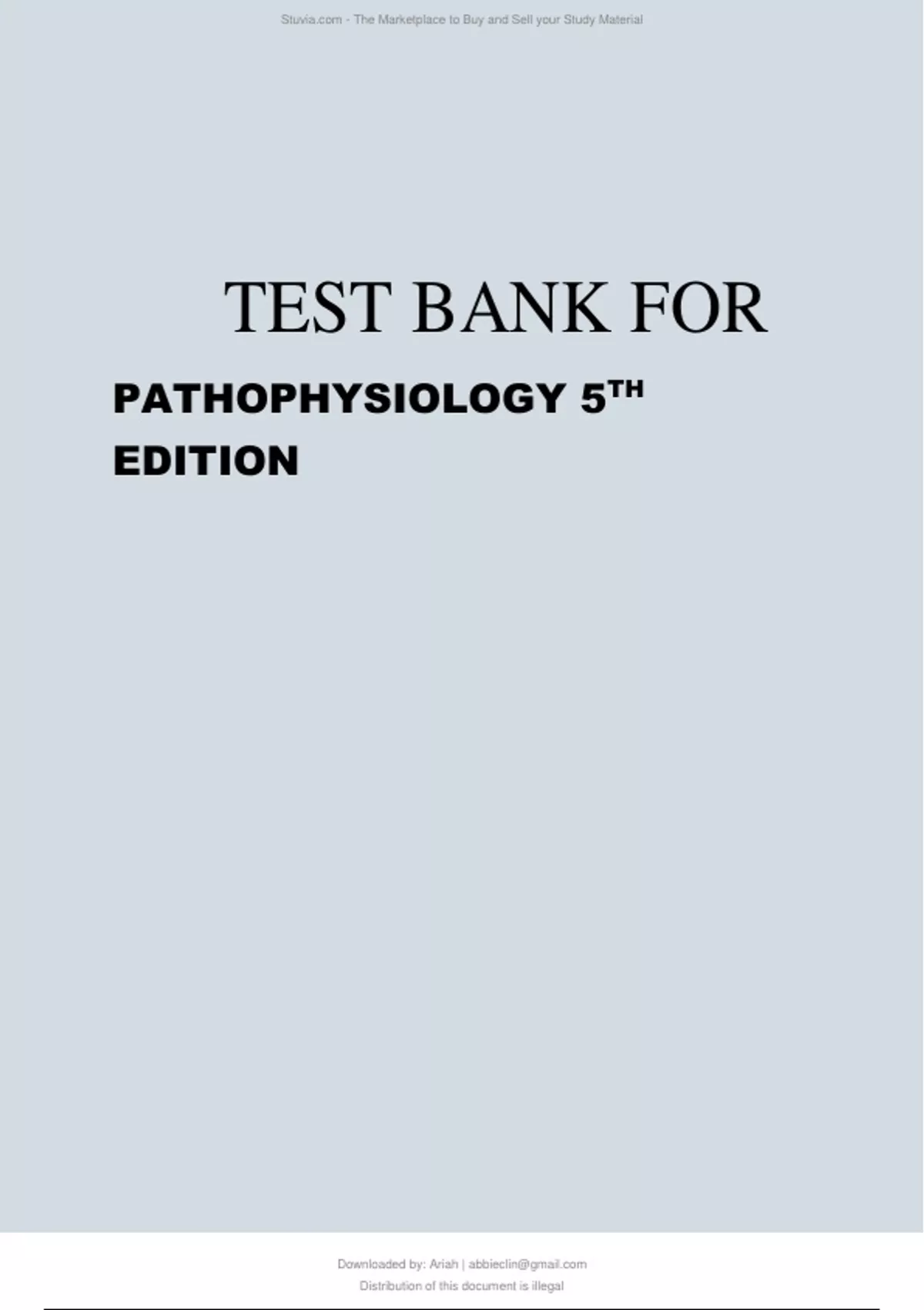 TEST BANK FOR PATHOPHYSIOLOGY 5TH EDITION