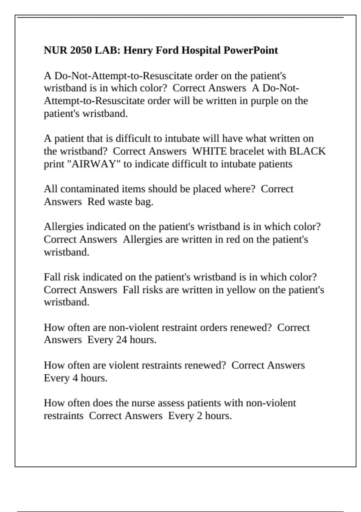NUR 2050 LAB: Henry Ford Hospital PowerPoint