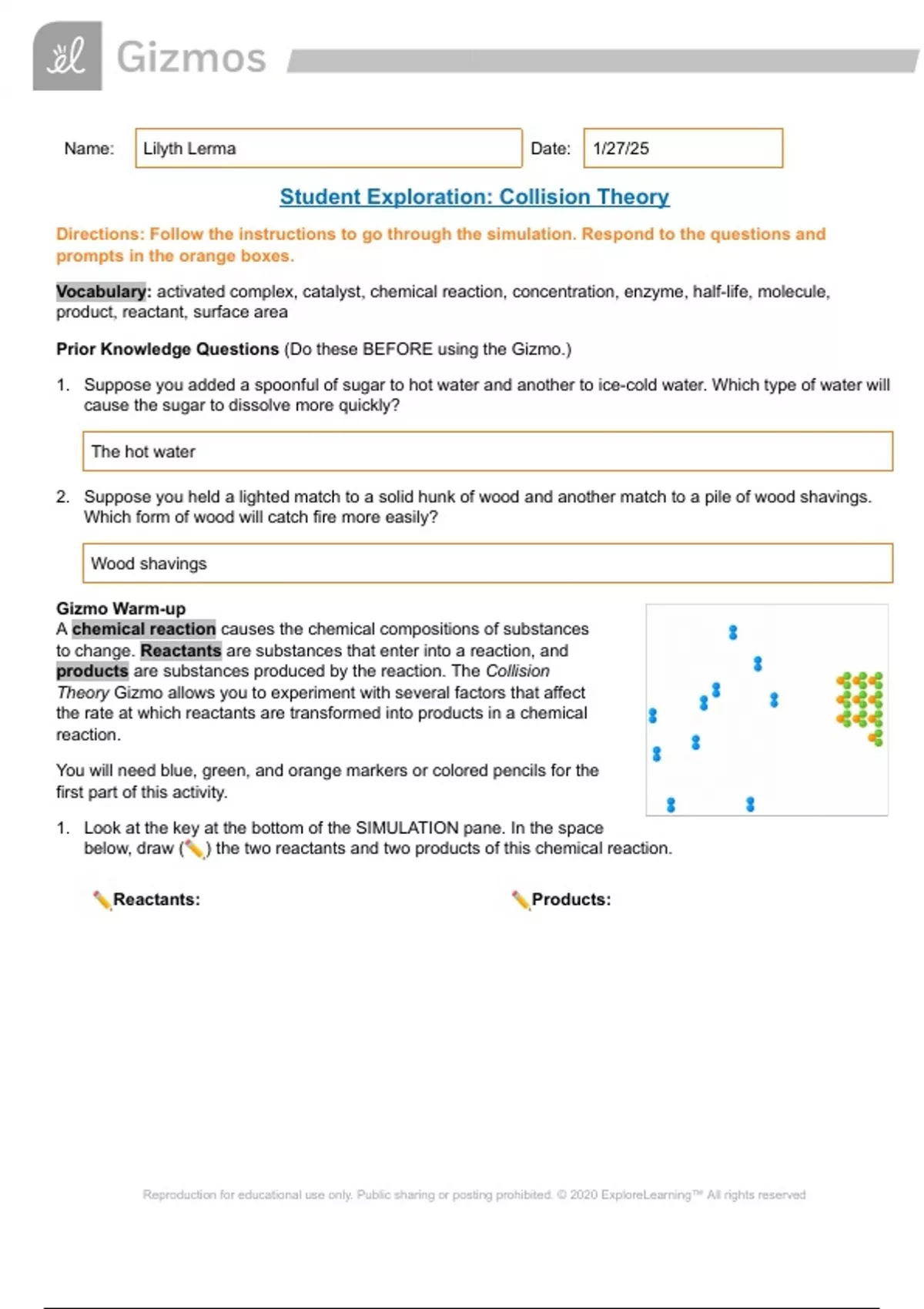 Student Exploration: Collision Theory