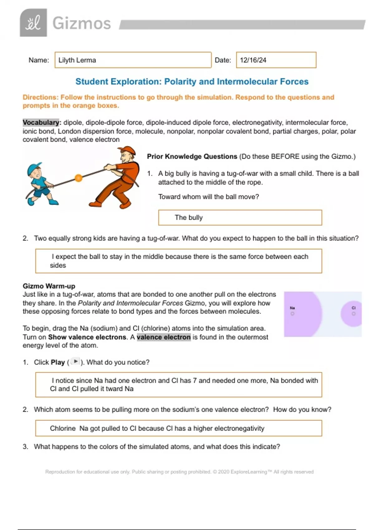 they share. In the Polarity and Intermolecular Forces Gizmo, you will explore how