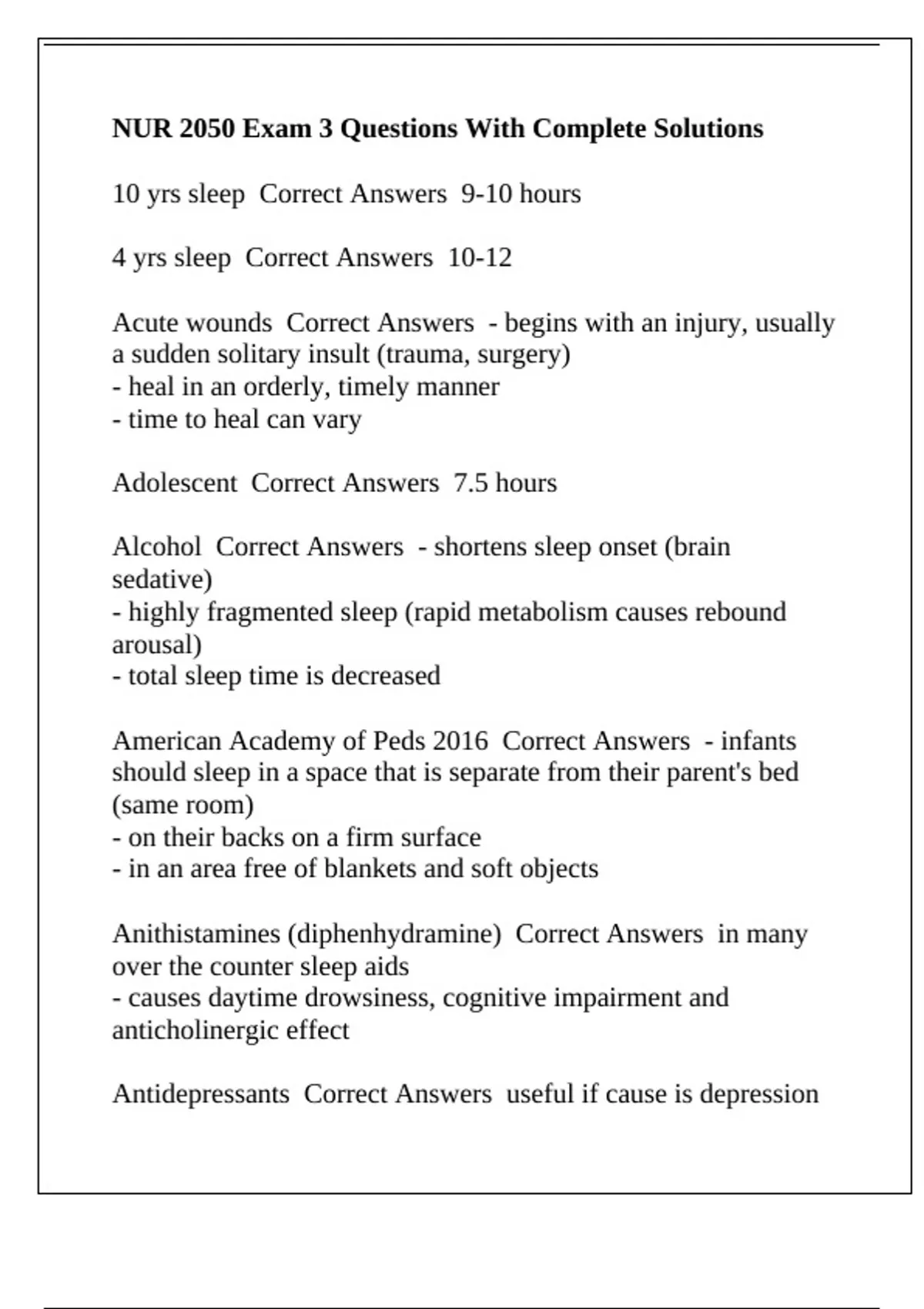NUR 2050 Exam 3 Questions With Complete Solutions