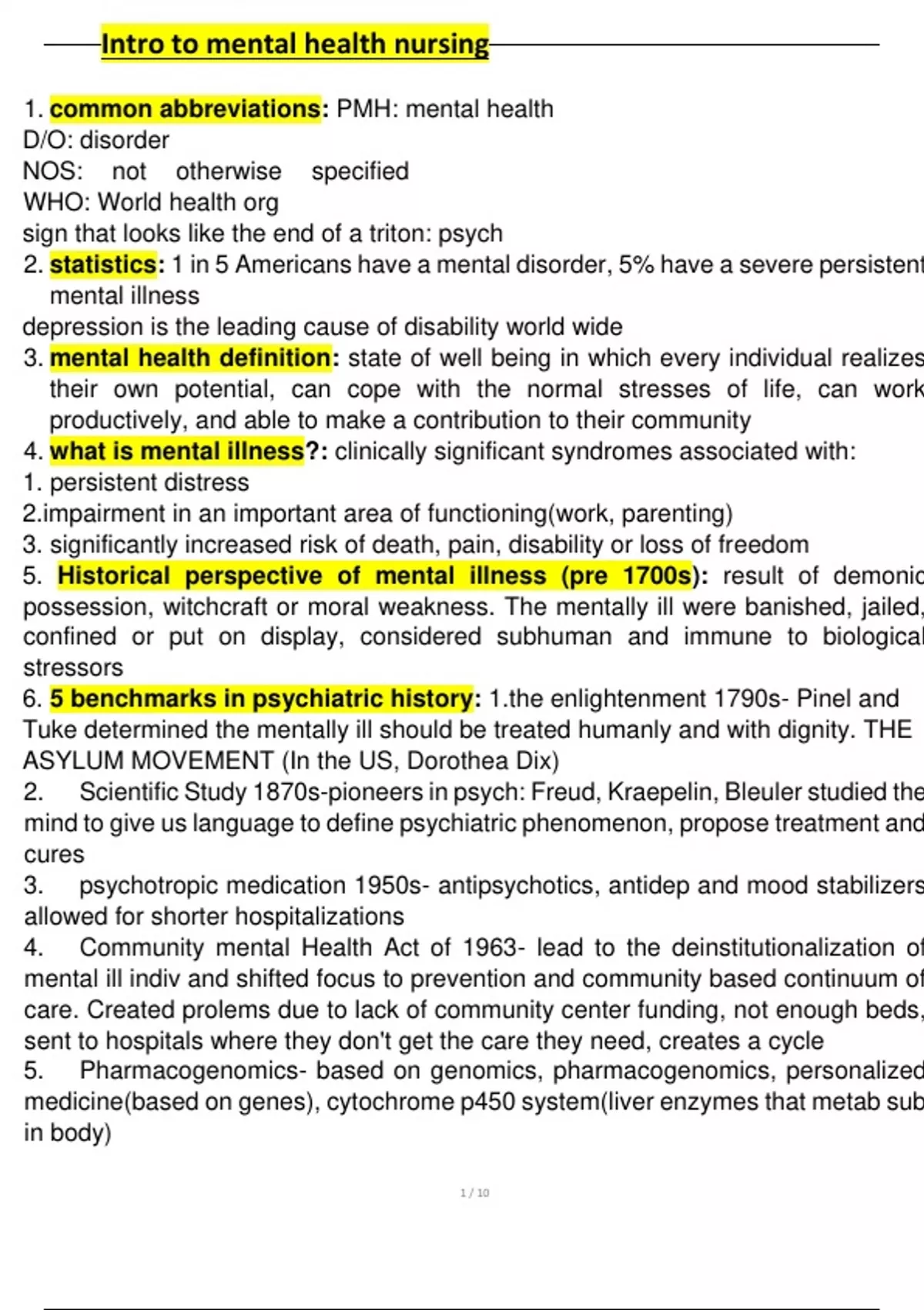 5. Historical perspective of mental illness (pre 1700s): result of demonic