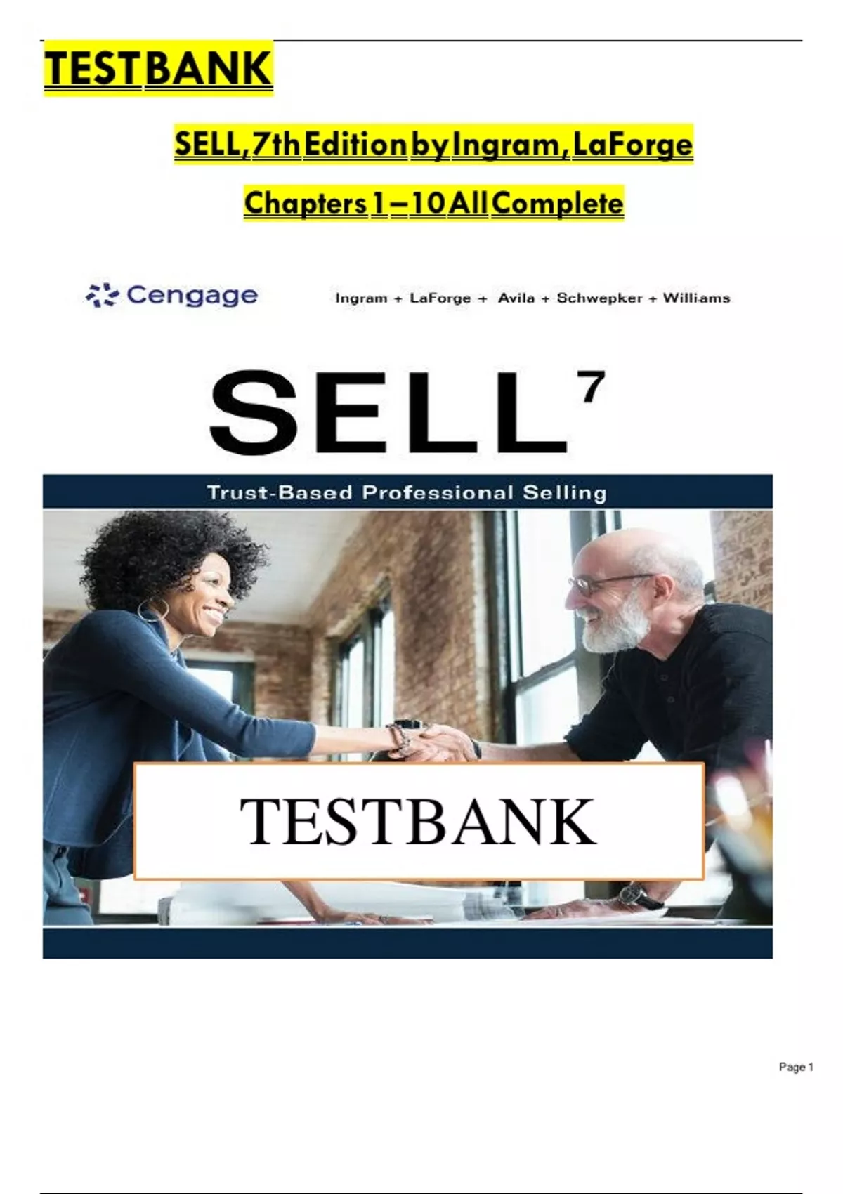 Test Bank for SELL, 7th Edition by Thomas N. Ingram, Raymond W. LaForge, All Chapters Covered, Verified Latest Edition.