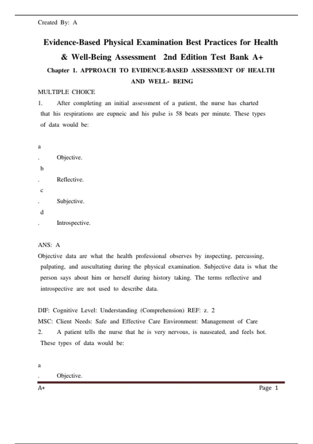 nd& Well-Being Assessment 2nd Edition Test Bank A+