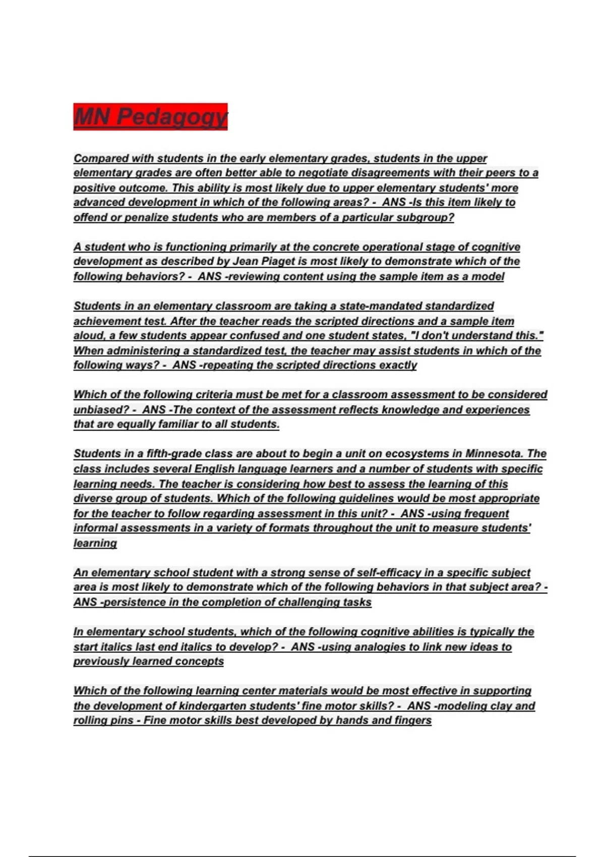 MN Pedagogy Exam Questions and Answers 2025/2026( A+ GRADED 100% VERIFIED).