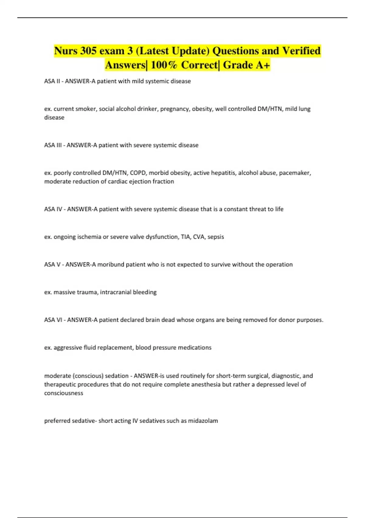Nurs 305 exam 3 (Latest Update) Questions and Verified