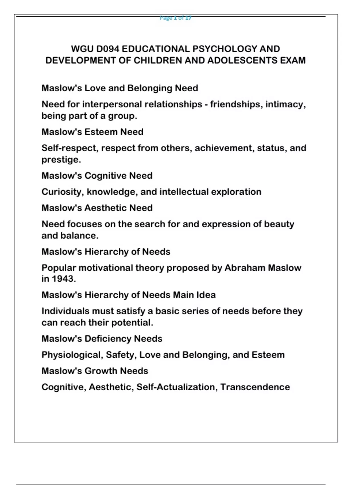 WGU D094 EDUCATIONAL PSYCHOLOGY AND DEVELOPMENT OF CHILDREN AND ADOLESCENTS EXAM