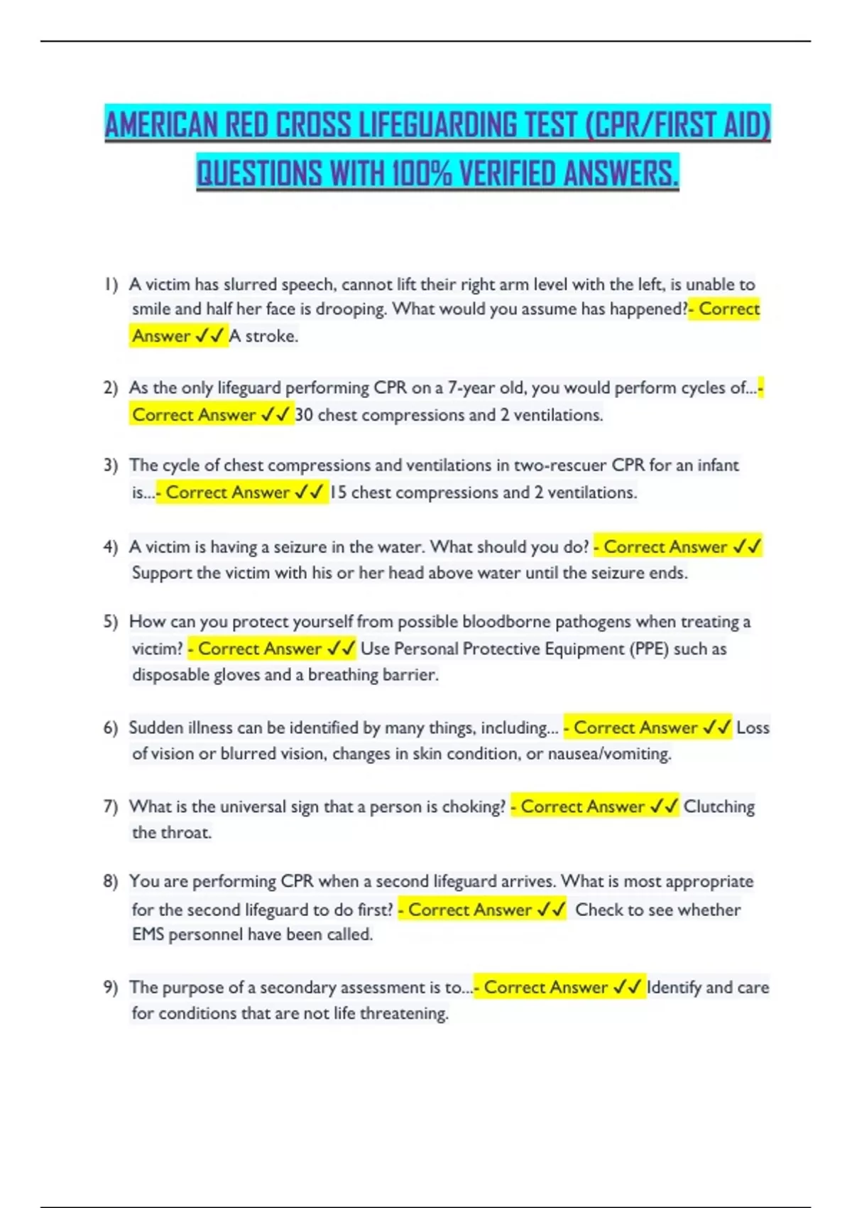 AMERICAN RED CROSS LIFEGUARDING TEST (CPR/FIRST AID)