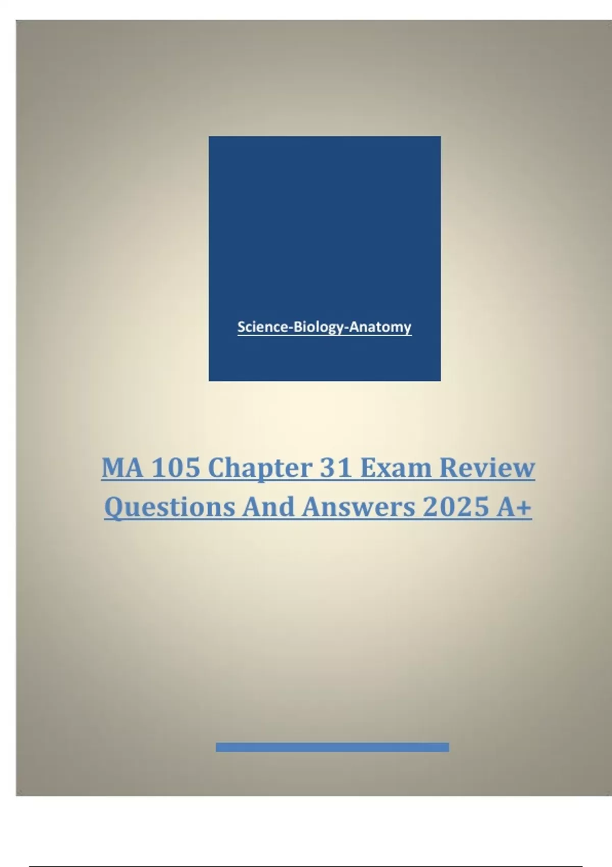 MA 105 Chapter 31 Exam Review Questions And Answers 2025 A+