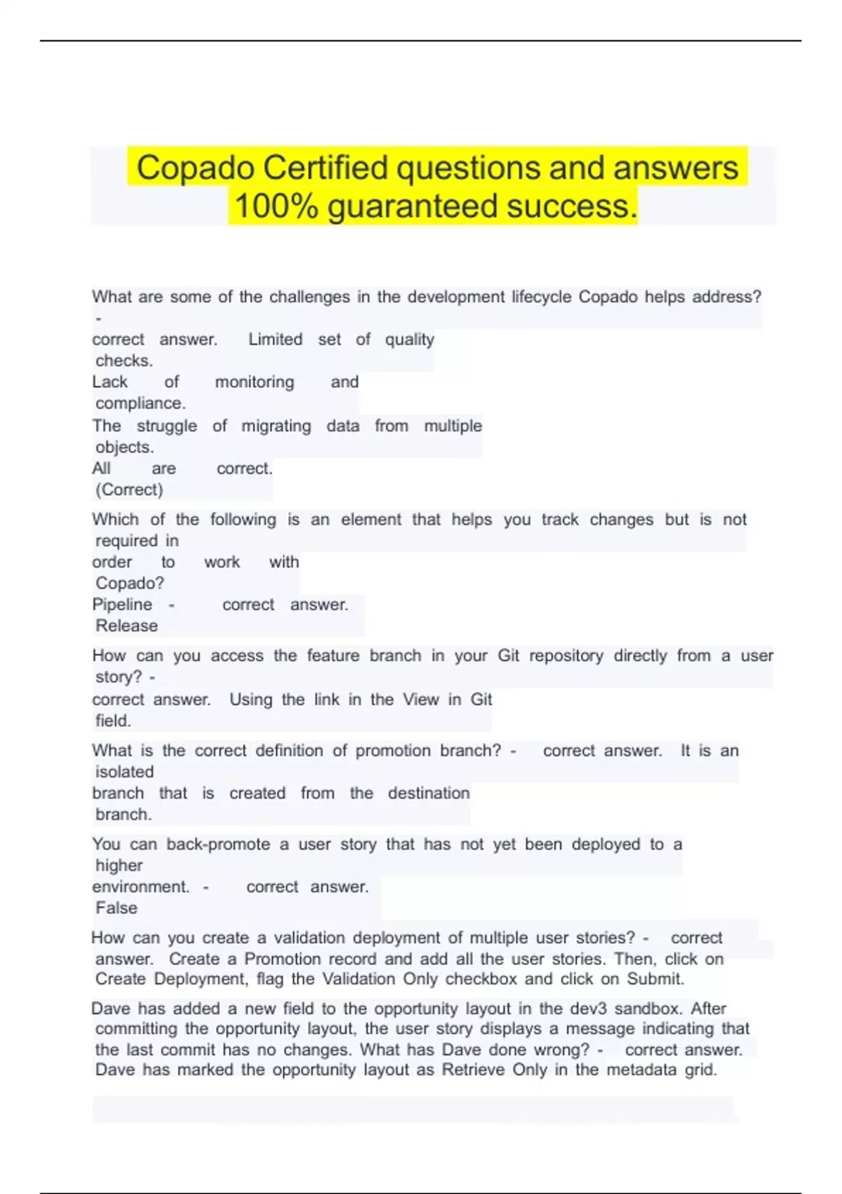 Copado Certified questions and answers 100% guaranteed success.
