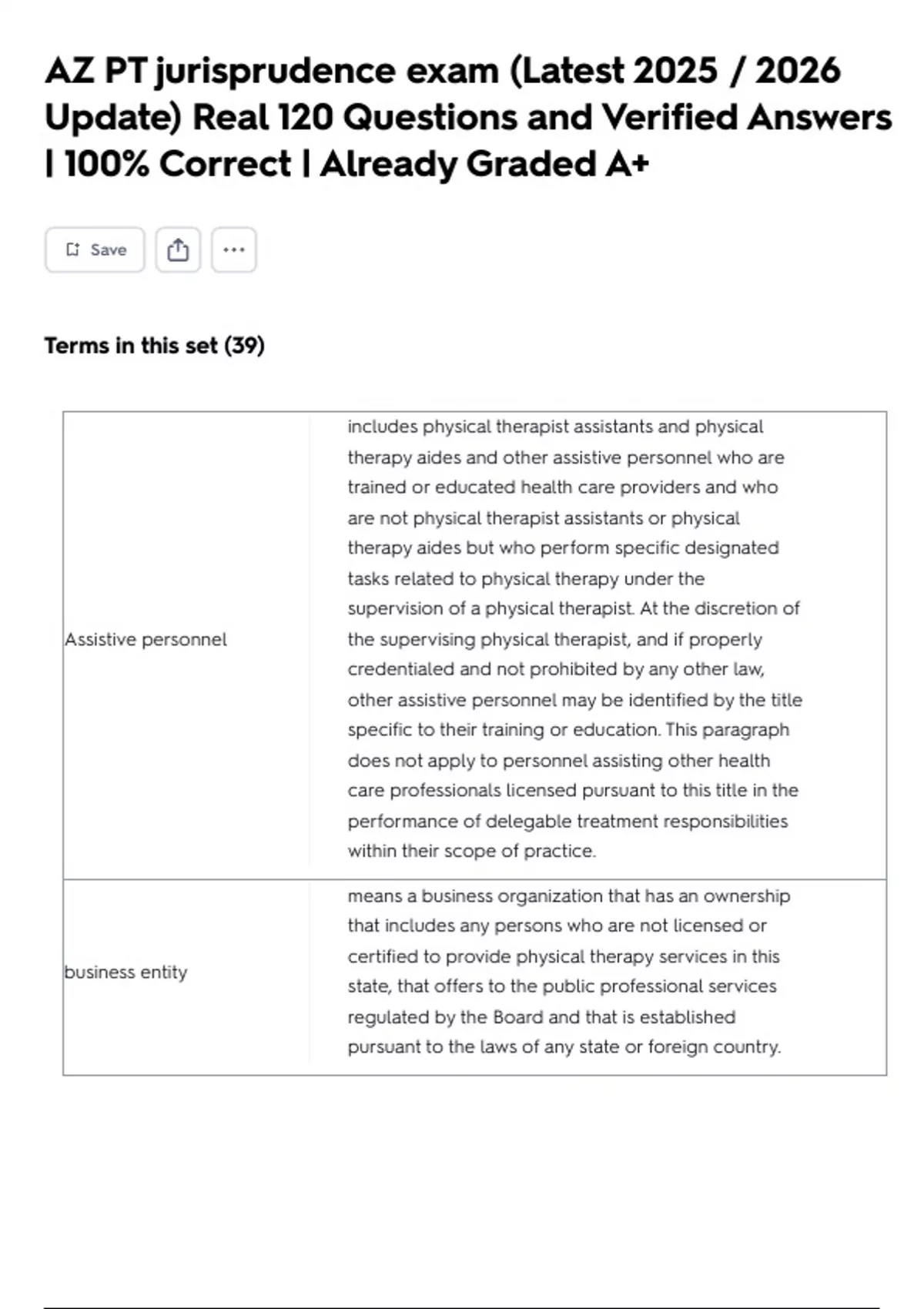 AZ PT jurisprudence exam (Latest 2025 / 2026 Update) Real 120 Questions and Verified Answers | 100% Correct | Already Graded A+