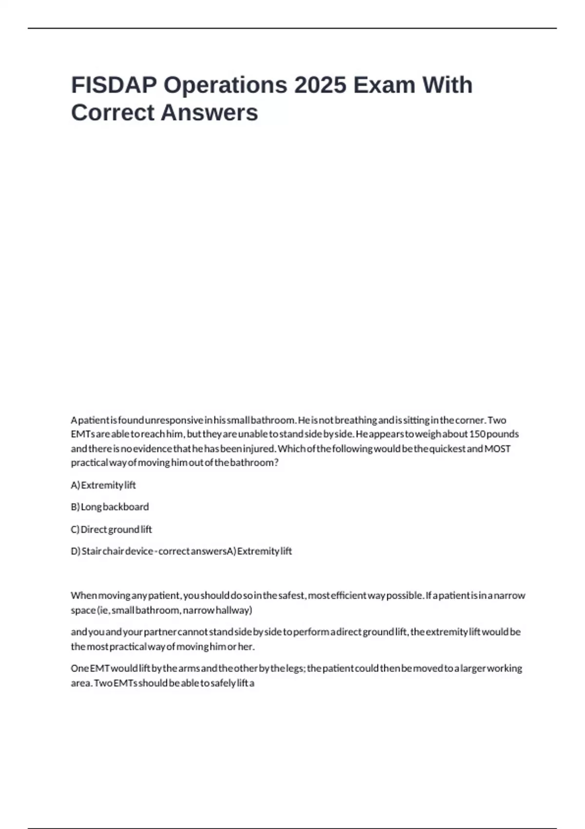 ,150-pound patient. A long backboard would clearly not work in the case of a narrow or small space because x x x x x x x x x x x x x x x x x x x