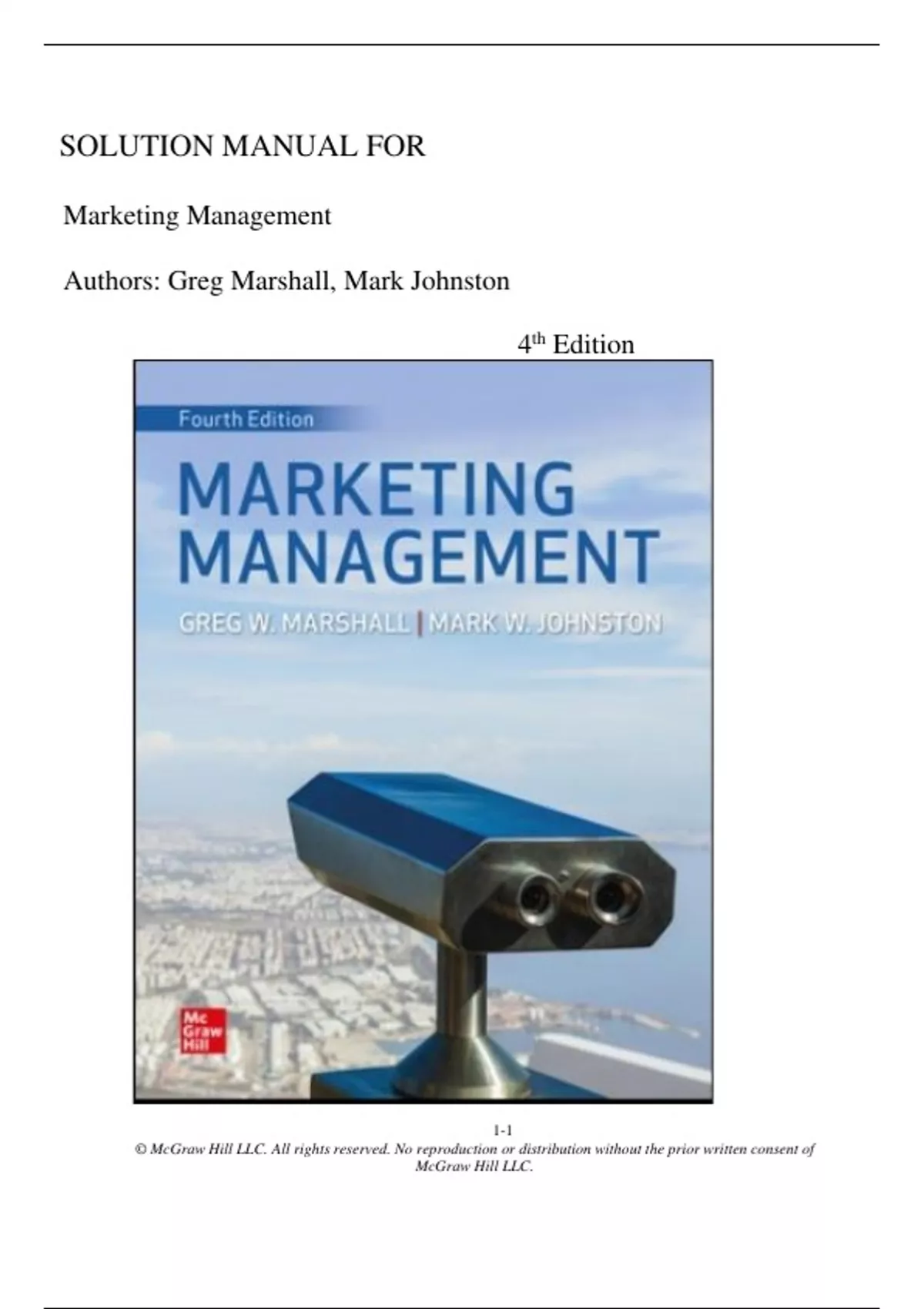 Solution Manual For Marketing Management 4th Edition ( Authors: Greg Marshall, Mark Johnston) -2025