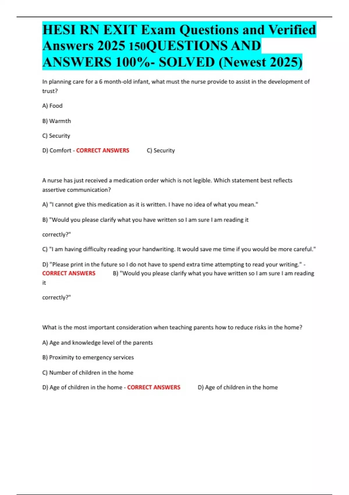 , HESI RN EXIT Exam Questions and Verified