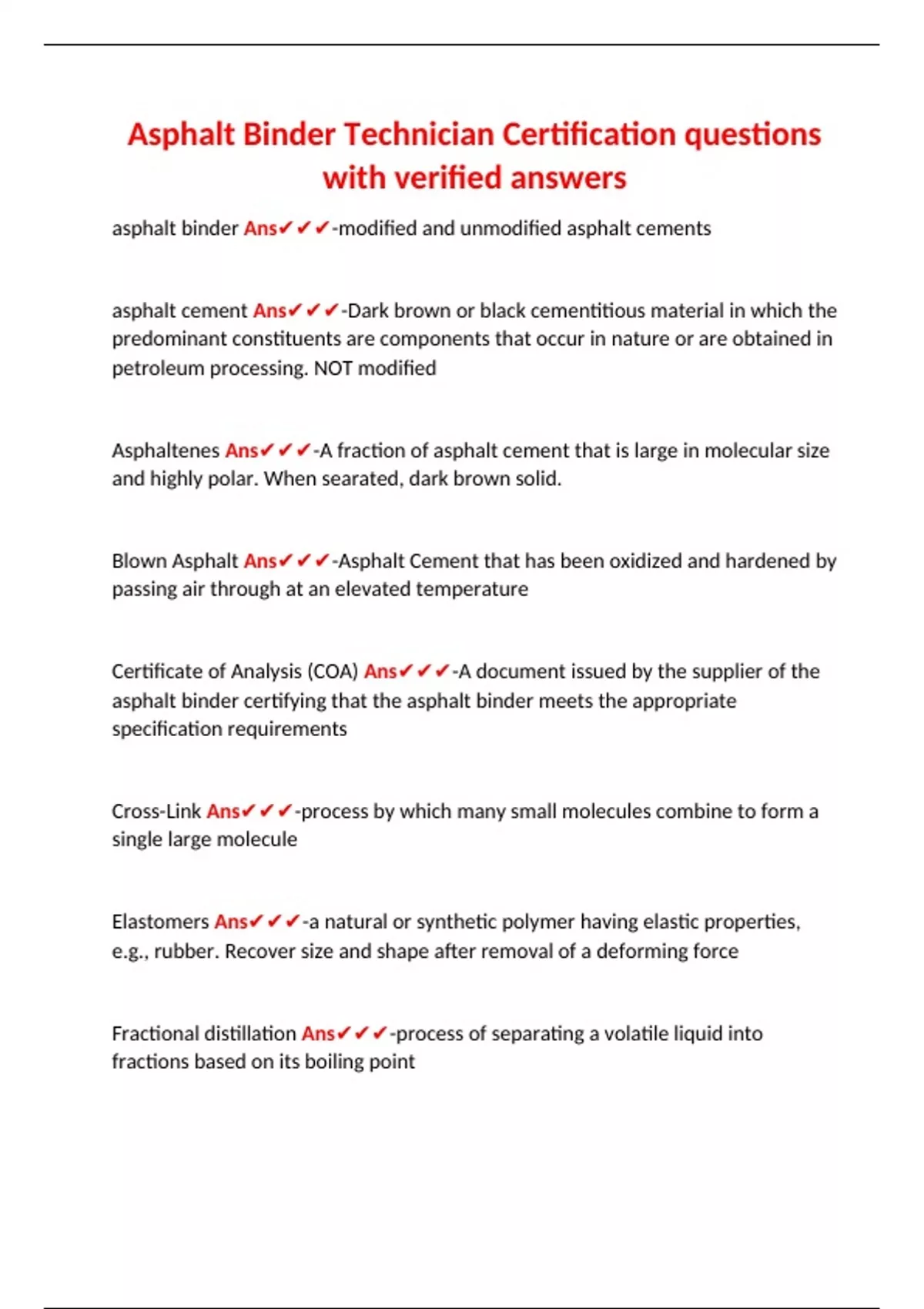 Asphalt Binder Technician Certification questions with verified answer1