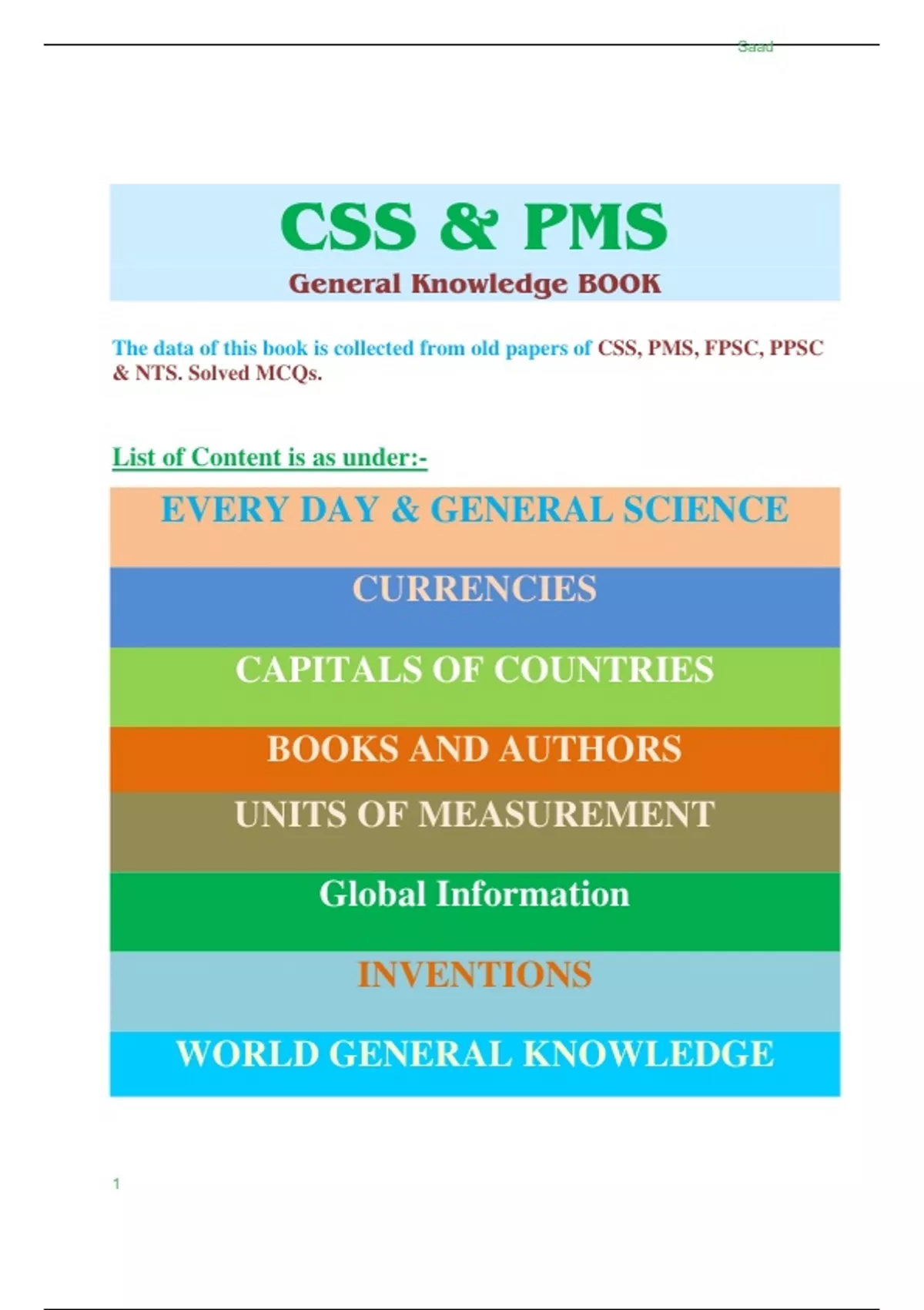 The data of this book is collected from old papers of CSS, PMS, FPSC, PPSC