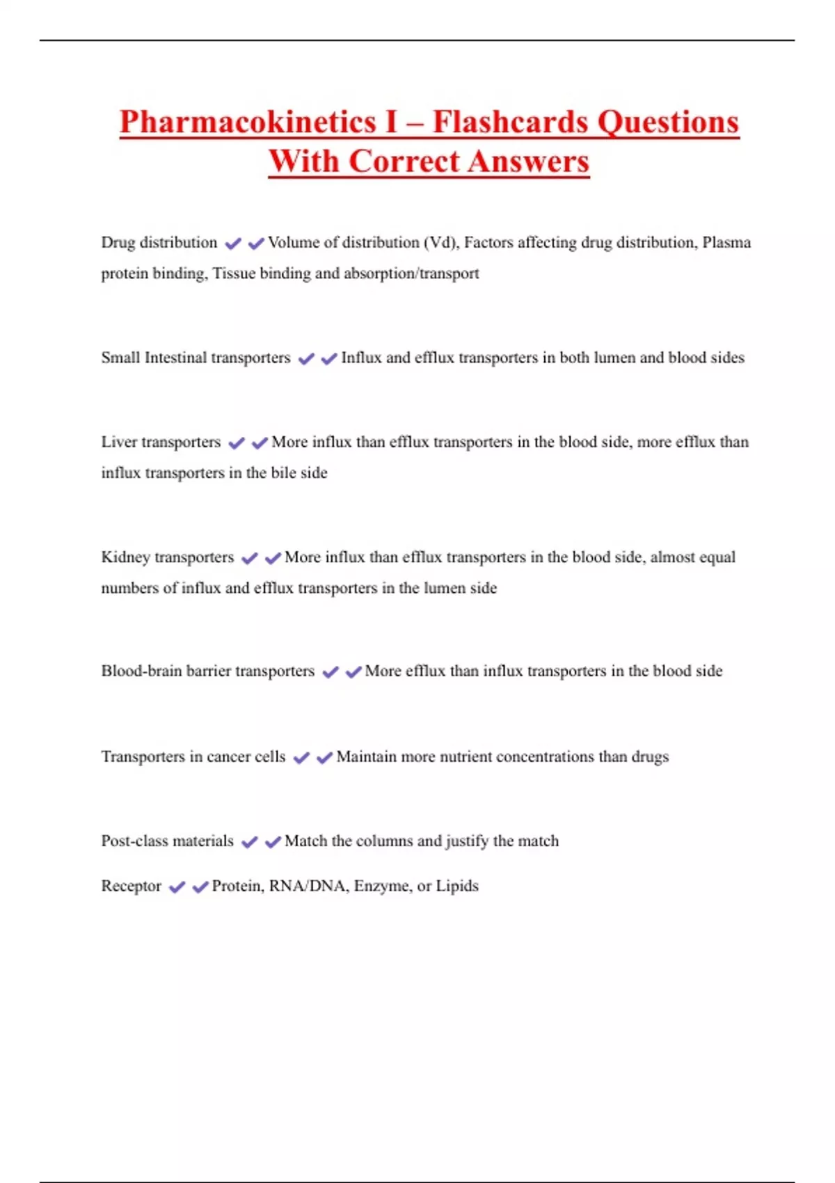 Pharmacokinetics I – Flashcards Questions With Correct Answers