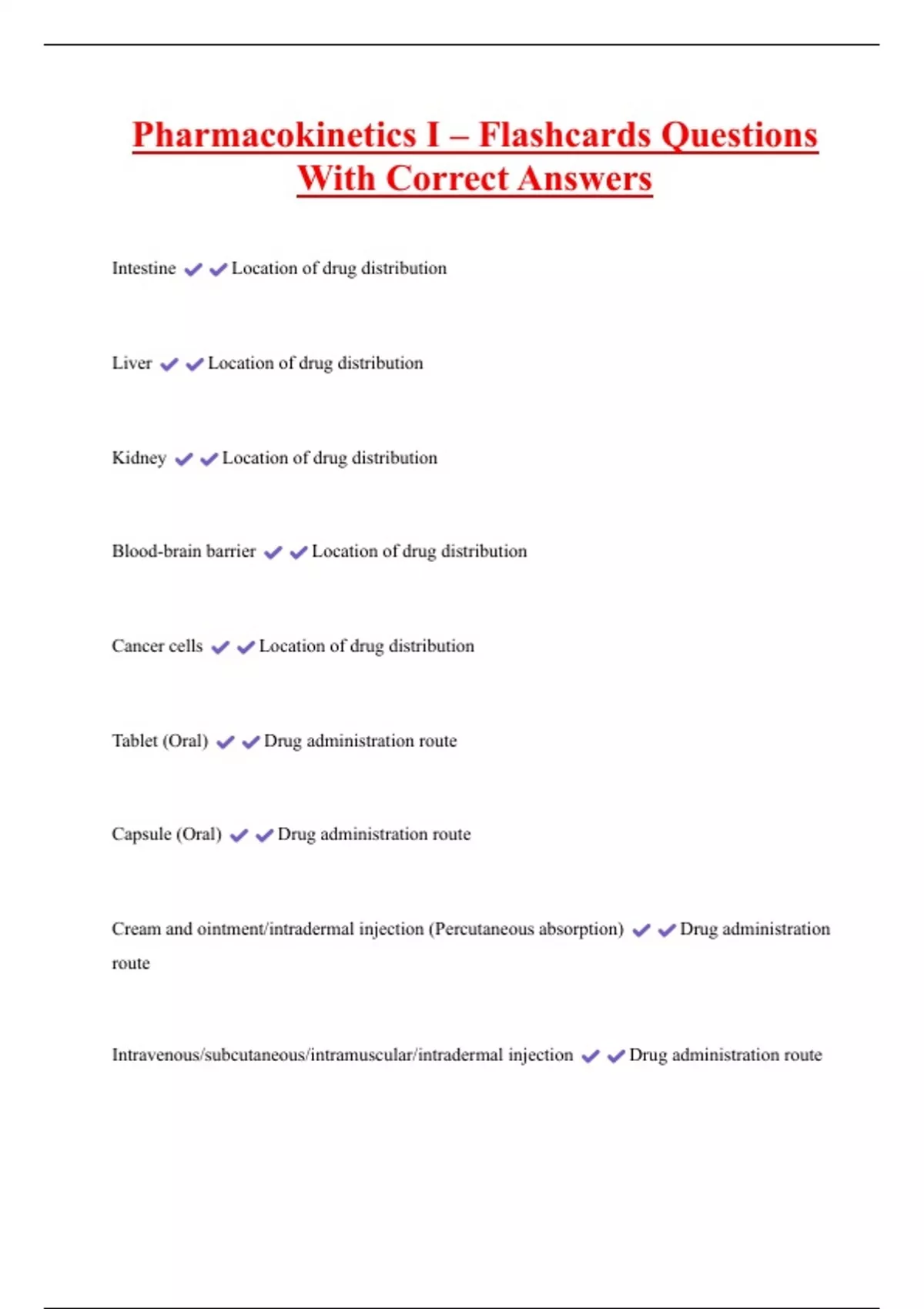 Pharmacokinetics I – Flashcards Questions With Correct Answers