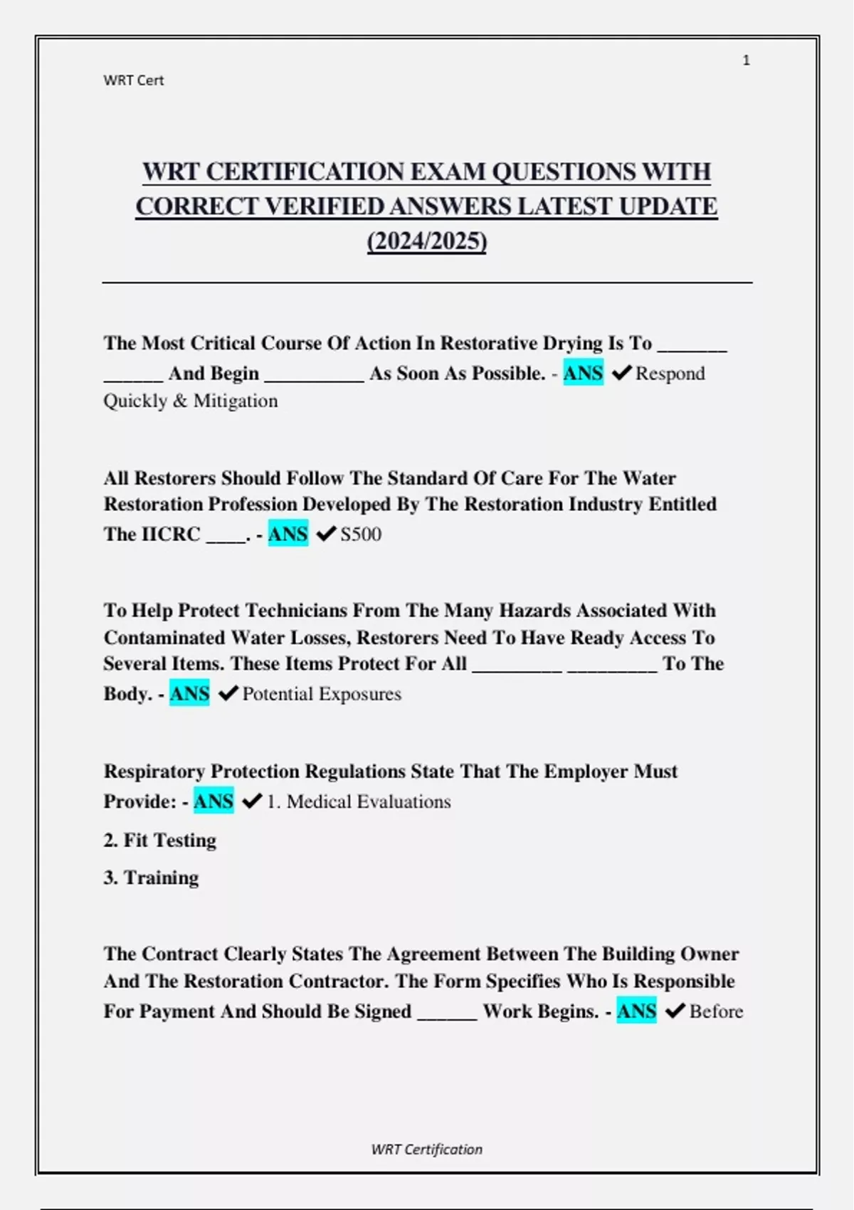 WRT CERTIFICATION EXAM QUESTIONS WITH