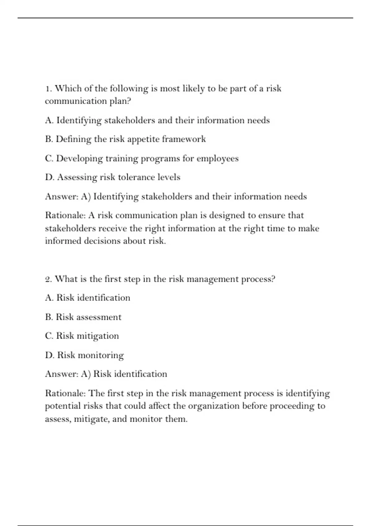 Rationale: The first step in the risk management process is identifying