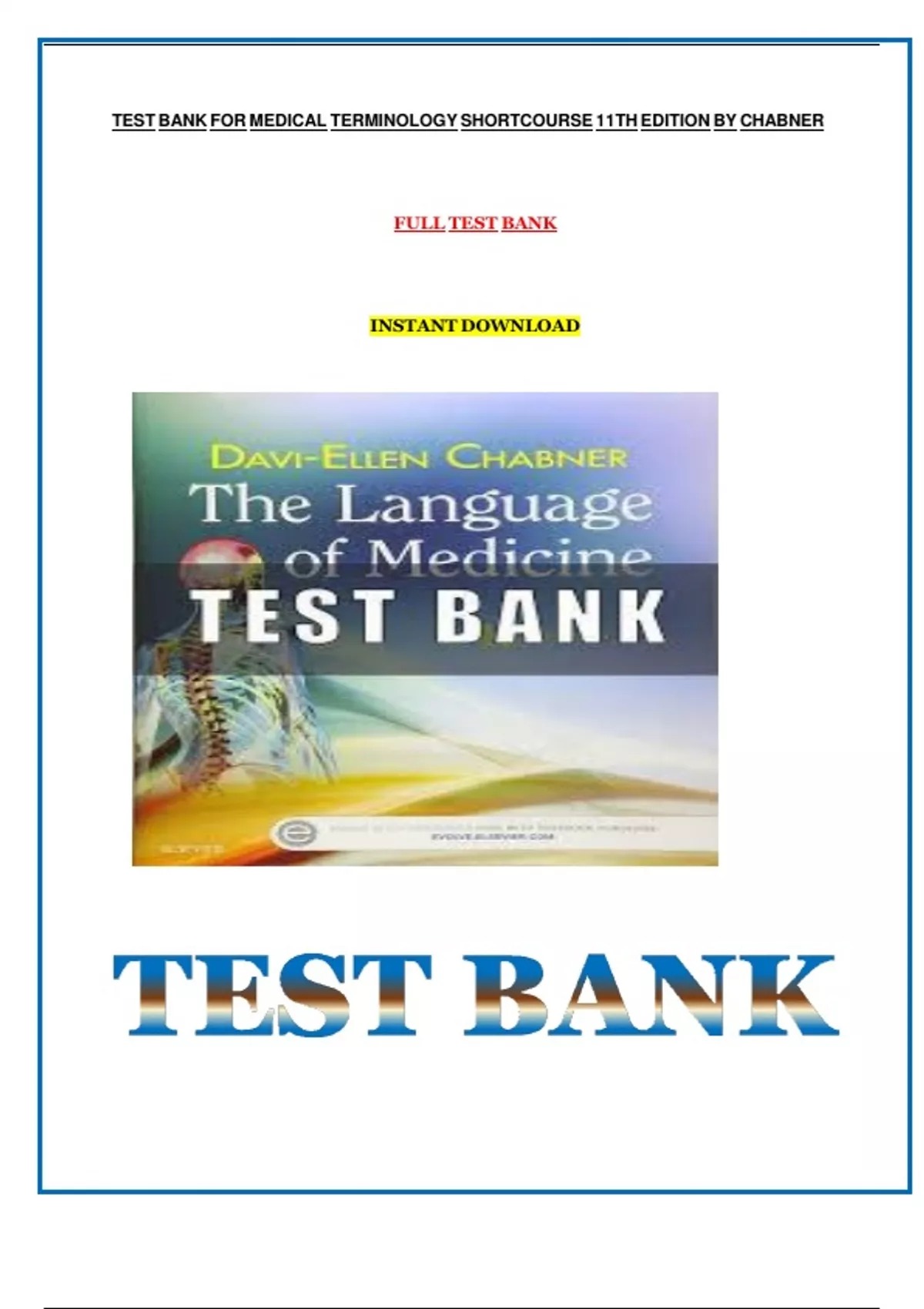 Test bank for medical terminology shortcourse 11th edition by Davi-Ellen Chabner