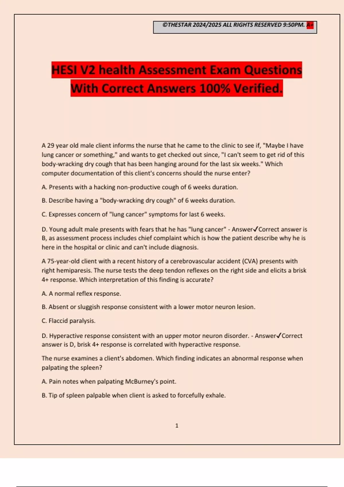 HESI V2 health Assessment Exam Questions