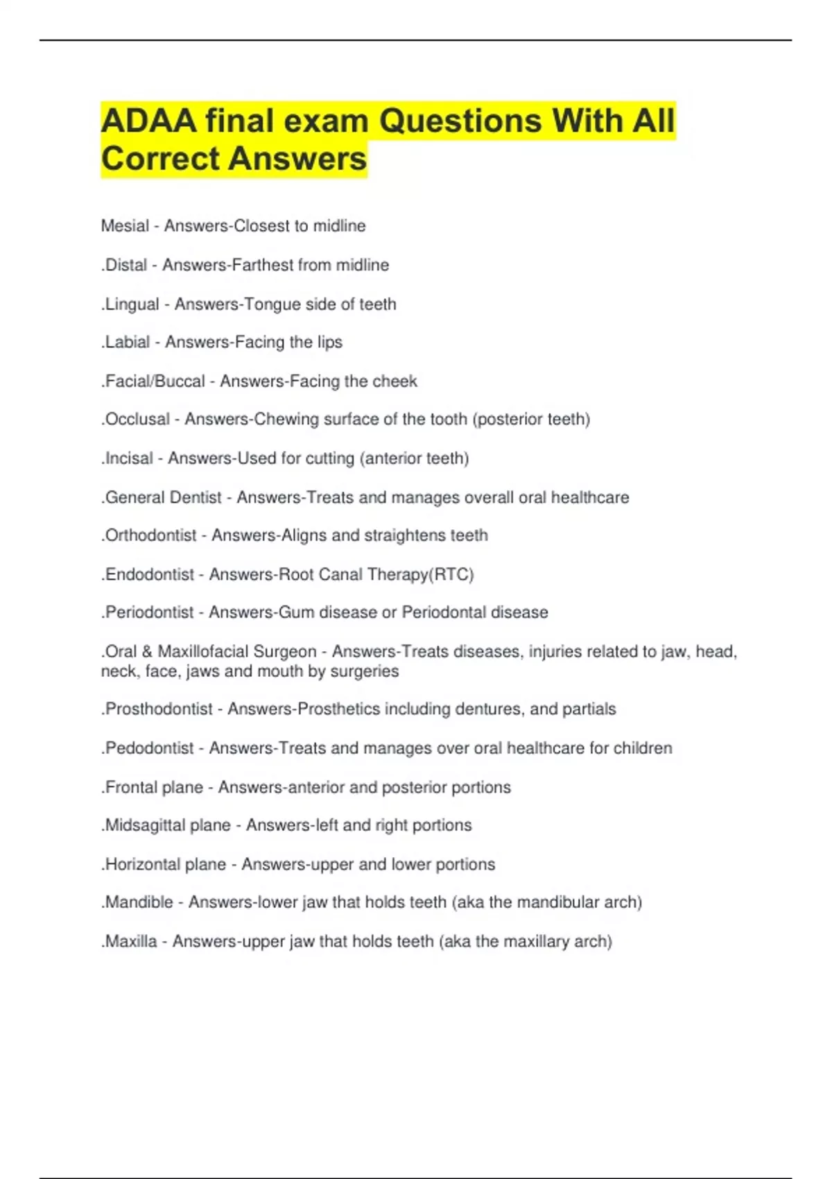 .Mandible - Answers-lower jaw that holds teeth (aka the mandibular arch)
