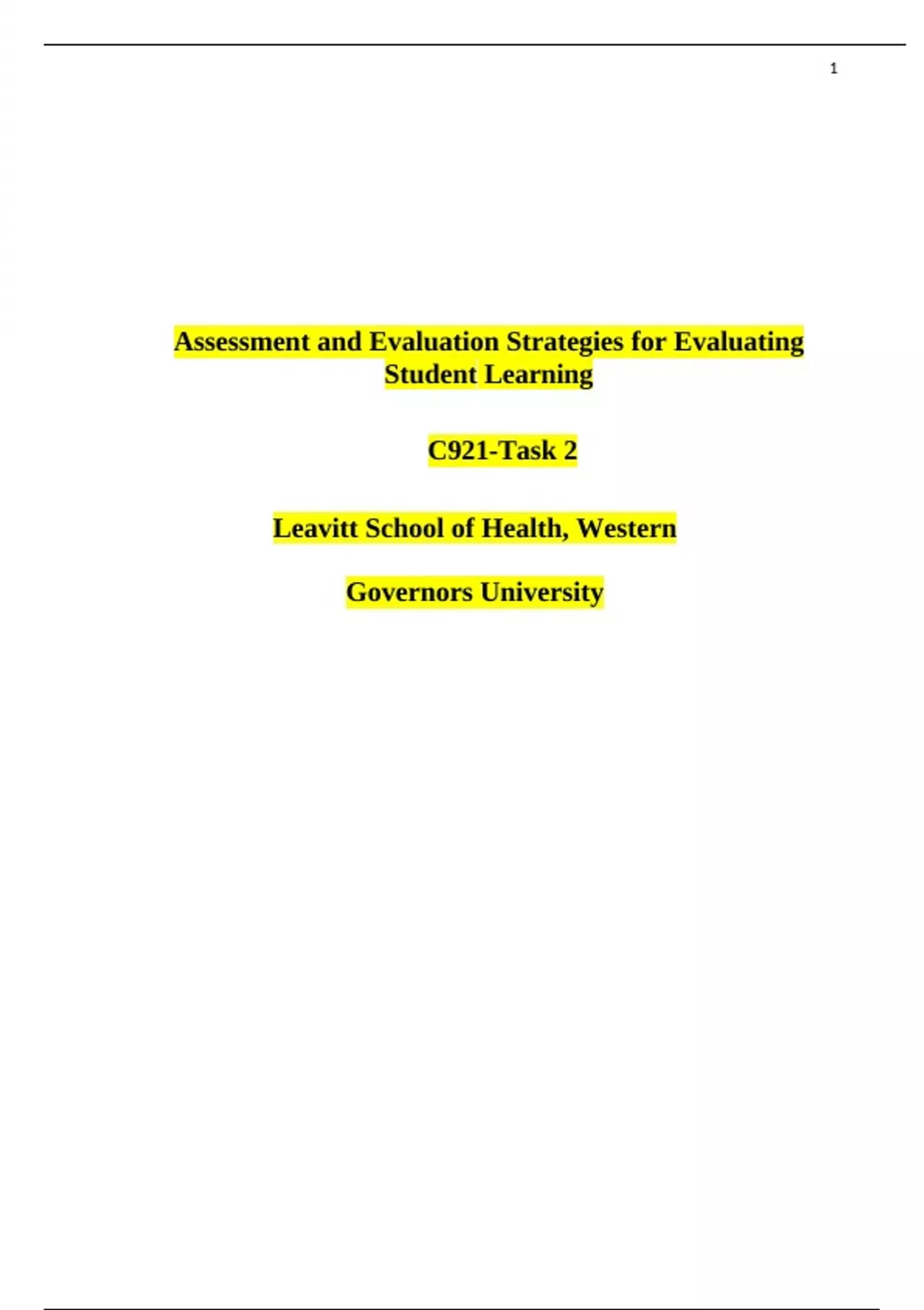 WGU C921 TASK 1|Assessment and Evaluation Strategies for Measuring Student Learning C921 Paper
