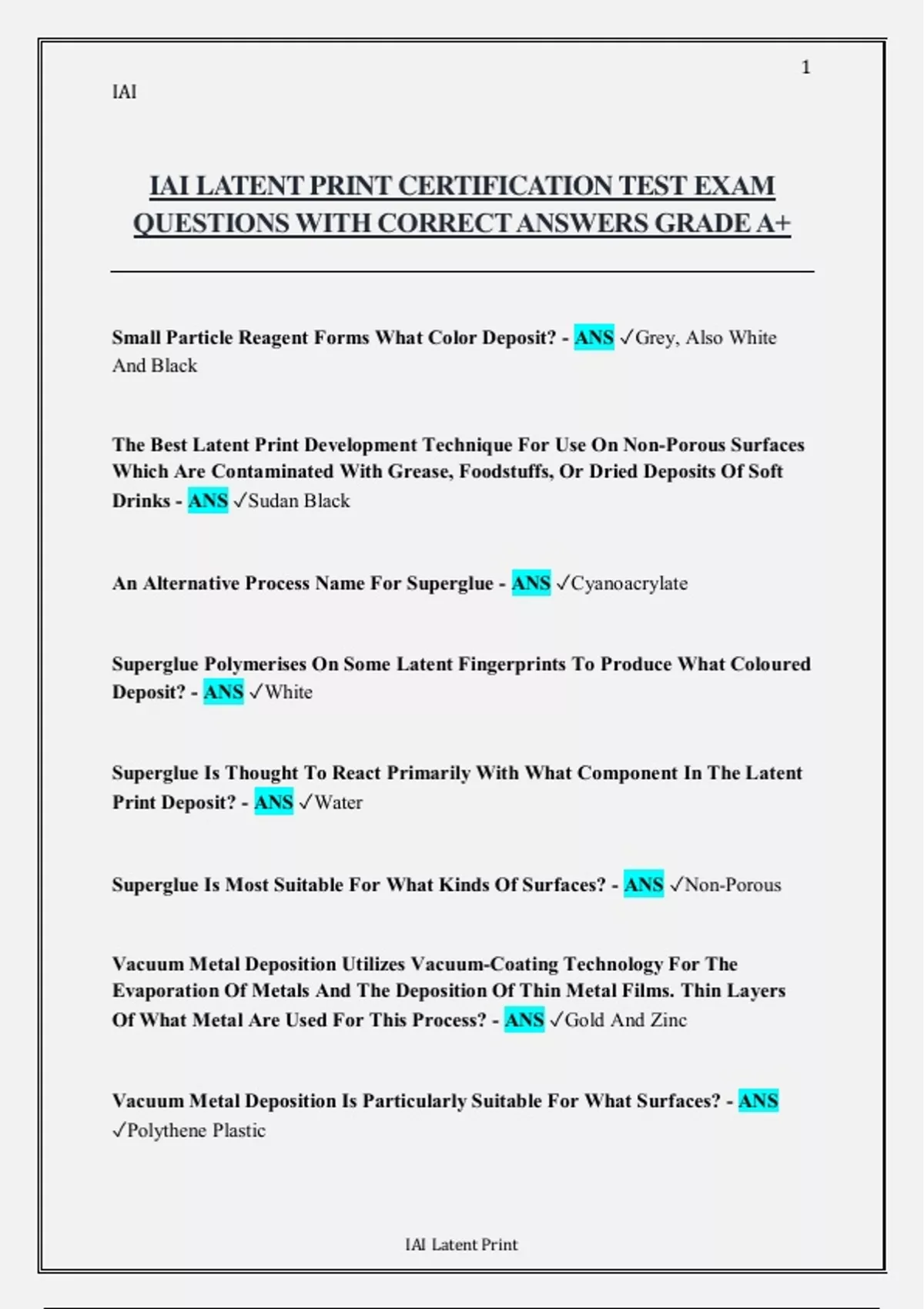 IAI LATENT PRINT CERTIFICATION TEST EXAM