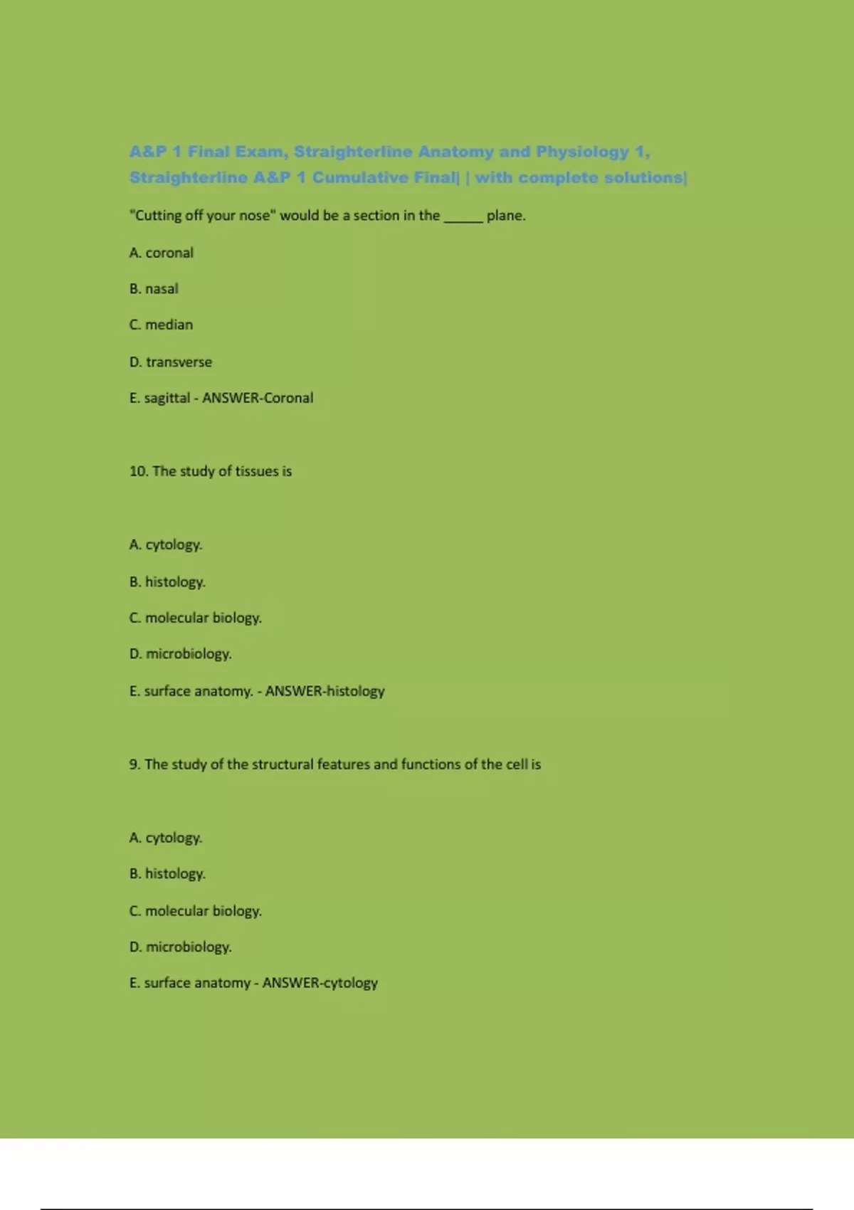 Straighterline A&P 1 Cumulative Final| | with complete solutions|