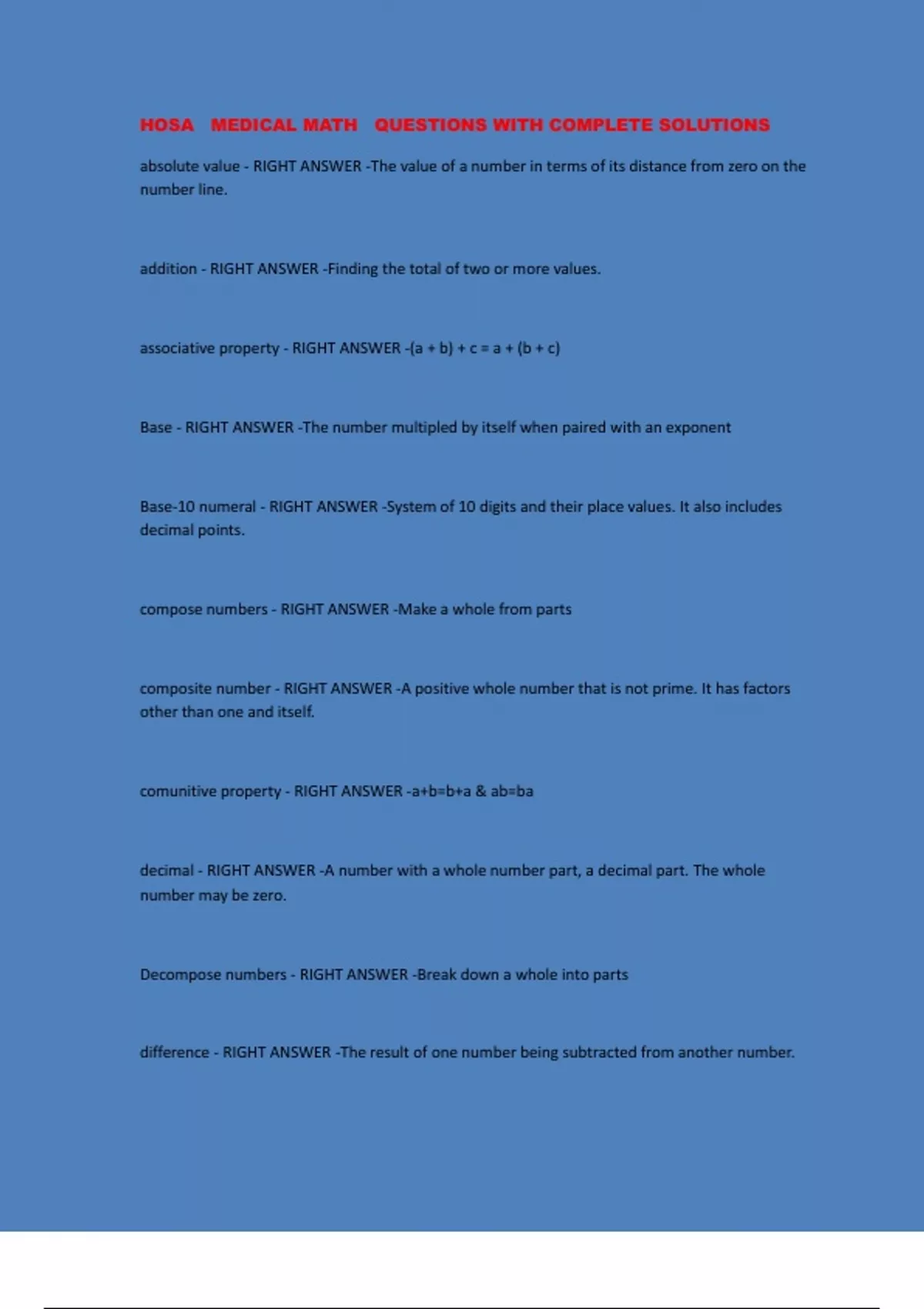 expanded form - RIGHT ANSWER -a number written as the sum of the values of its digits