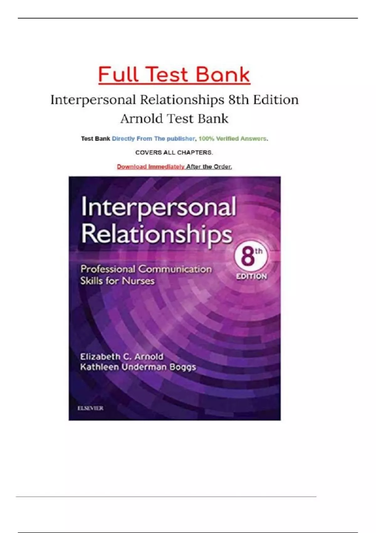 INTERPERSONAL RELATIONSHIPS PROFESSIONAL COMMUNICATION SKILLS FOR NURSES 8TH EDITION ARNOLD TEST BANK ALL CHAPTERS COVERED QUESTIONS AND ANSWERS GRADED A+ |LATEST UPDATE| |2025-26|