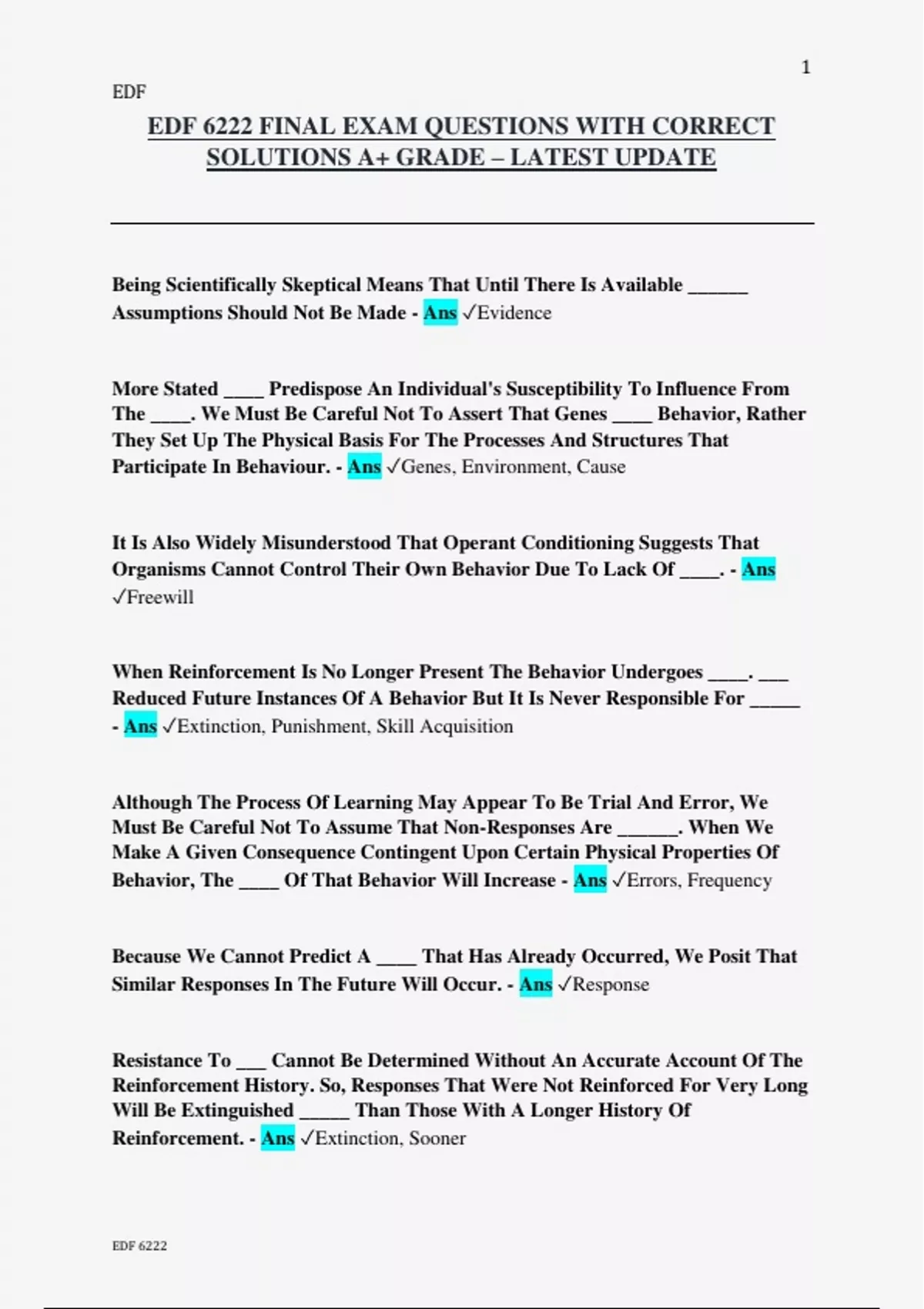 EDF 6222 FINAL EXAM QUESTIONS WITH CORRECT SOLUTIONS A+ GRADE – LATEST UPDATE