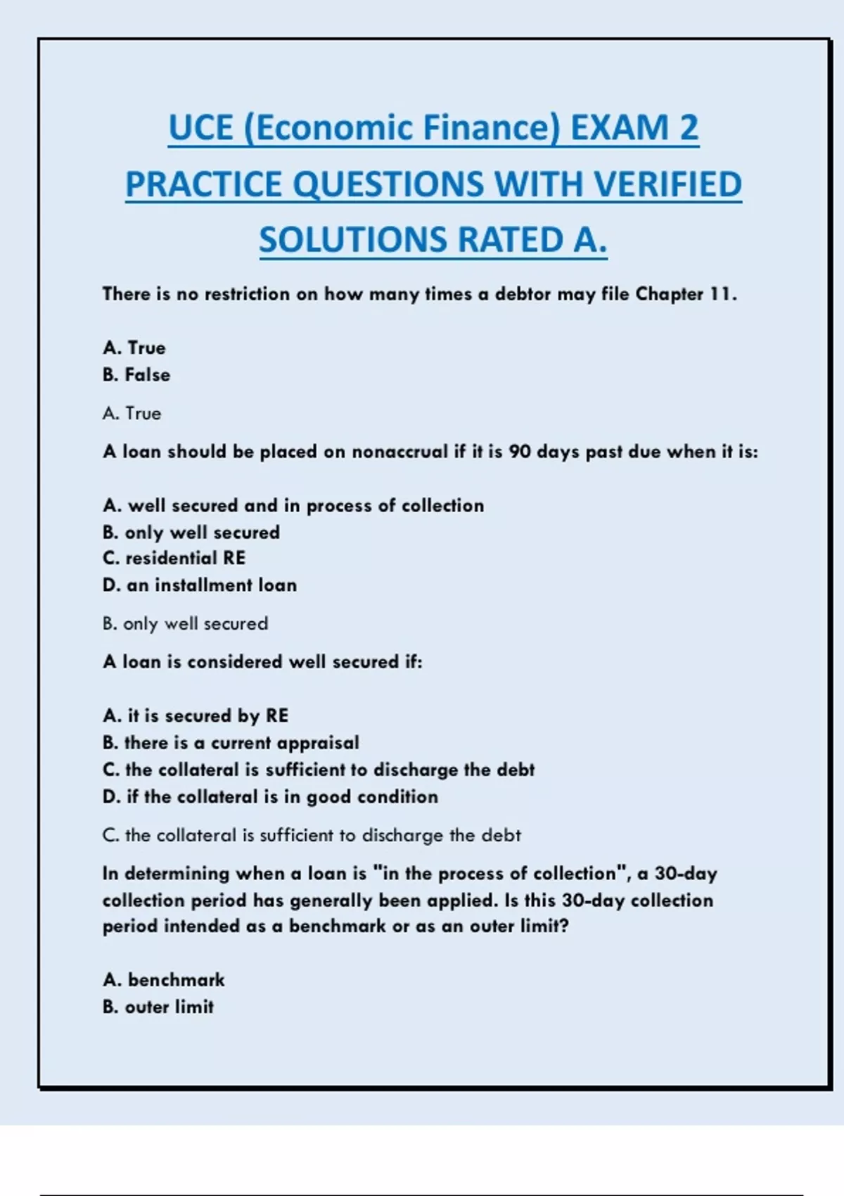 PRACTICE QUESTIONS WITH VERIFIED