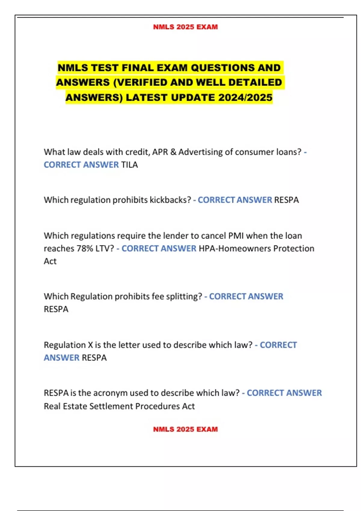 NMLS TEST FINAL EXAM QUESTIONS AND